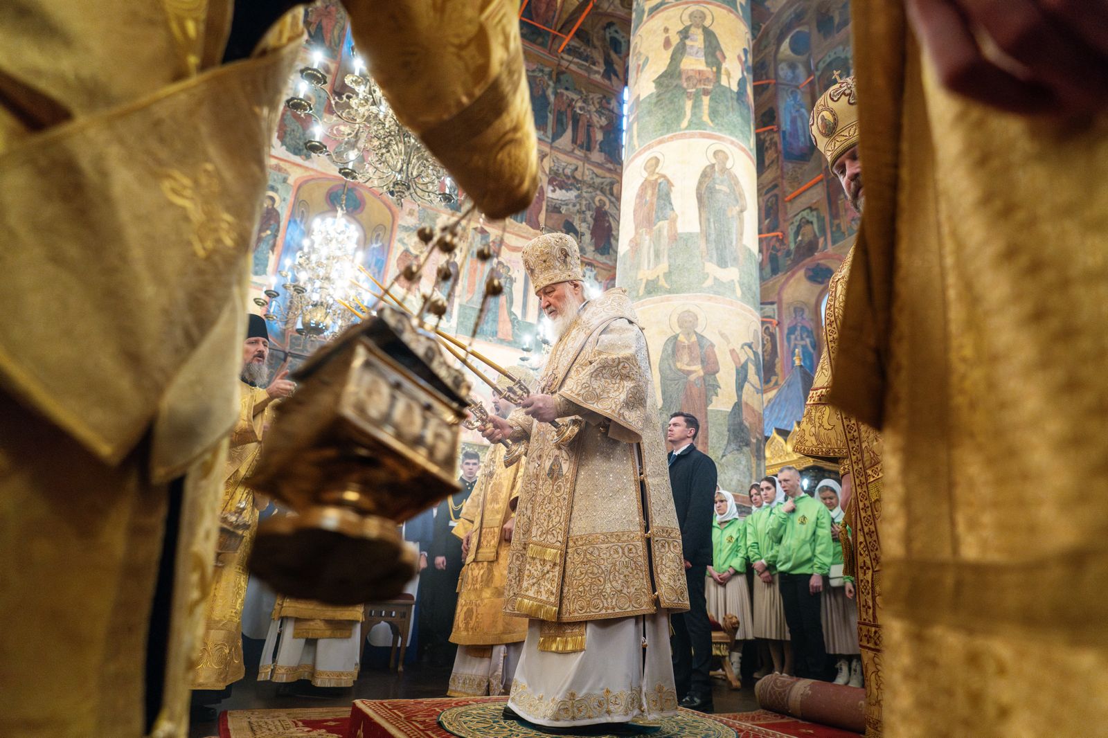 На сугубой ектении были вознесены особые прошения, Предстоятель Русской Церкви прочитал молитву о Святой Руси.
