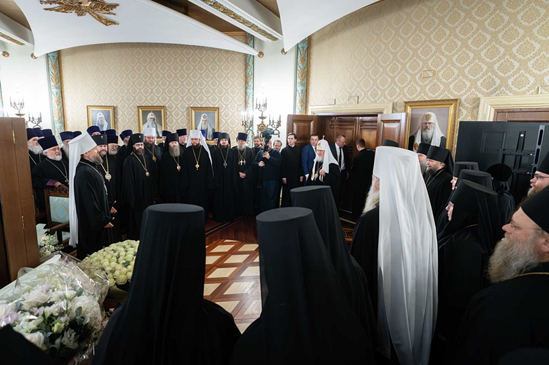 В зале собрались Преосвященные викарии, благочинные церковных округов, наместники и игумении ставропигиальных монастырей.
