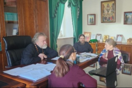 Состоялась встреча временно исполняющего обязанности председателя Синодального отдела по церковной благотворительности и социальному служению протоиерея Михаила Потокина с президентом благотворительного фонда «Банк еды "Русь"» Юлией Назаровой. На встрече также присутствовал руководитель отдела социального служения и сектора по взаимодействию с епархиями Синодального отдела по благотворительности диакон Игорь Куликов.