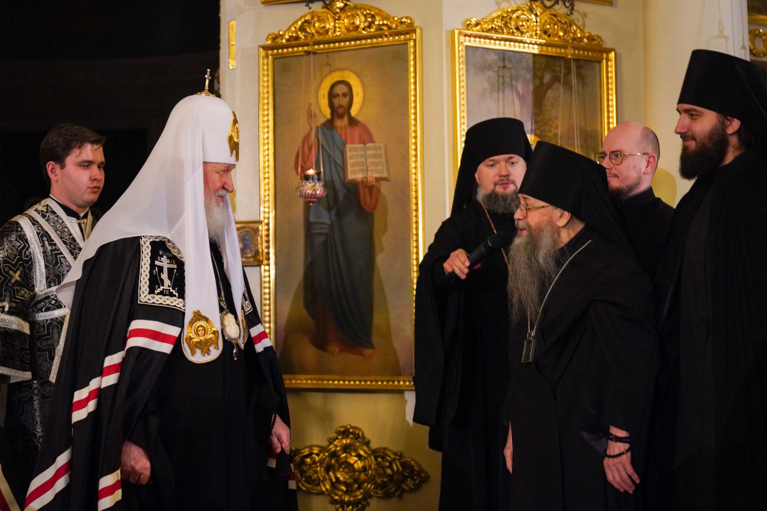 В среду первой седмицы Великого поста Святейший Патриарх Кирилл совершил повечерие с чтением Великого канона прп. Андрея Критского в Даниловом монастыре