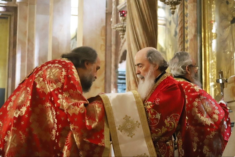 Его Блаженству сослужил сонм архиереев Иерусалимской Православной Церкви, духовенство Святогробского братства, грекоязычные и арабоязычные клирики Иерусалимского Патриархата, а также представители Поместных Православных Церквей в Святом граде.