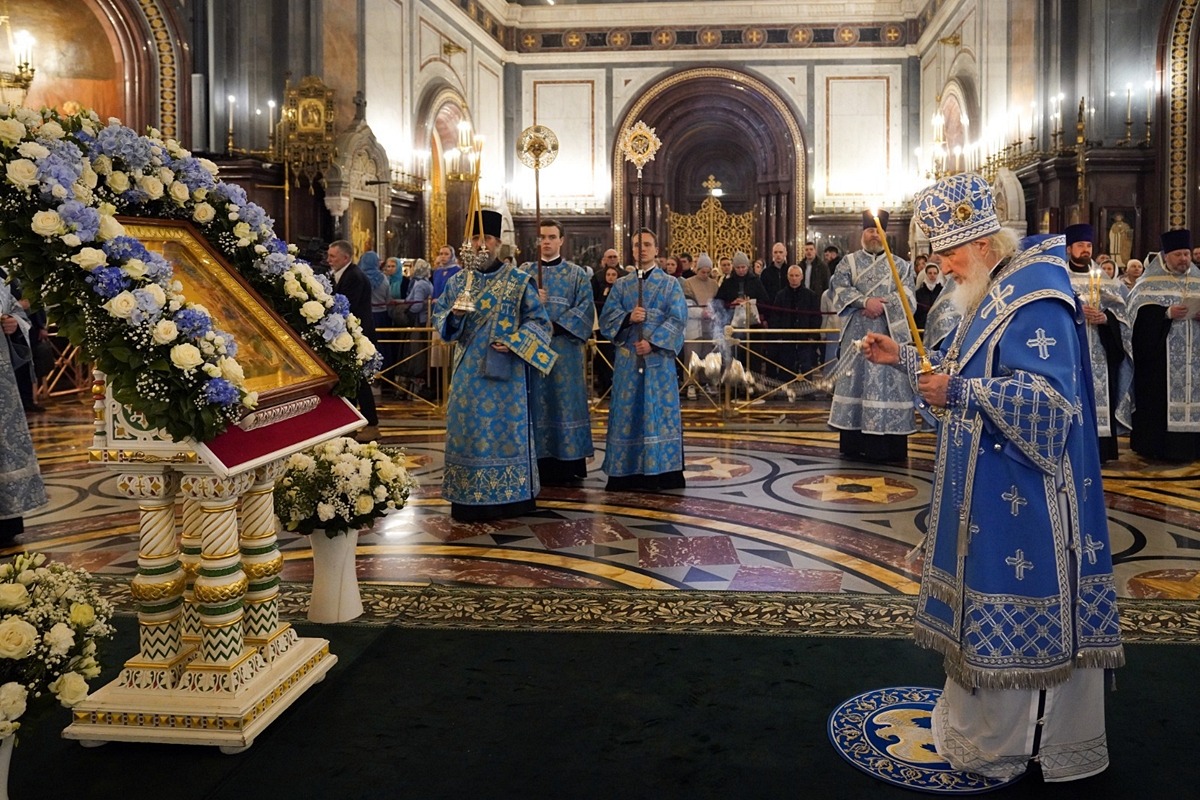 Вечером 6 апреля 2025 года, в канун праздника Благовещения Пресвятой Богородицы, дня преставления святителя Тихона, Патриарха Московского (1925), Святейший Патриарх Московский и всея Руси Кирилл совершил всенощное бдение в кафедральном соборном Храме Христа Спасителя в Москве.