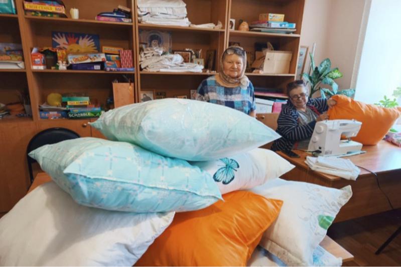 - Сотрудники швейной мастерской при Свято-Троицком храме Орла передали гуманитарную помощь в госпитали ДНР и ЛНР. Совместно с добровольцами из других приходов города они изготовили более 4400 медицинских салфеток, 3400 стерильных шариков, 200 пеленок, более 150 простыней, более 130 ватно-марлевых повязок, 28 хирургических шапочек, 22 кофты из флиса, одеяла и подушки.