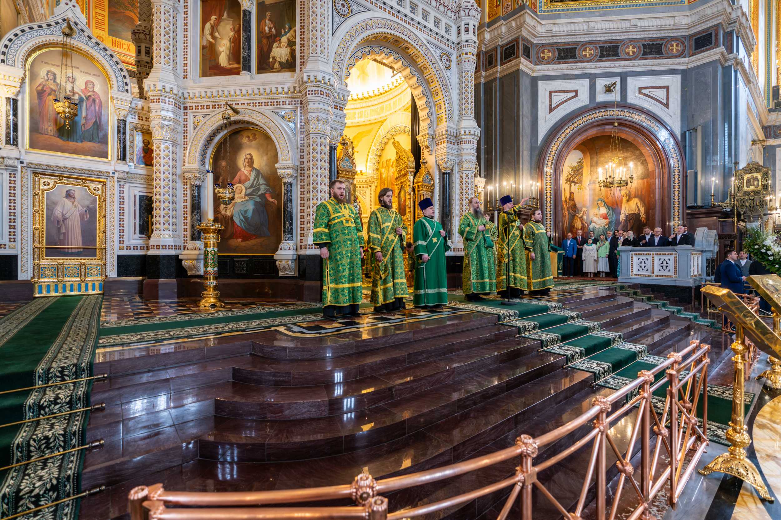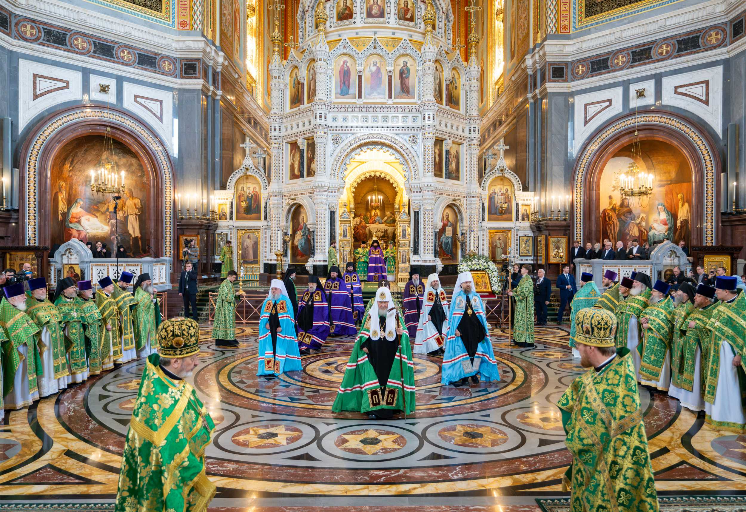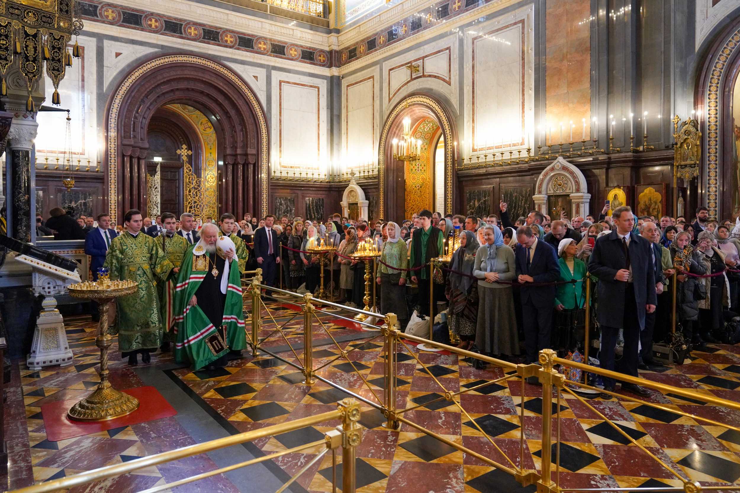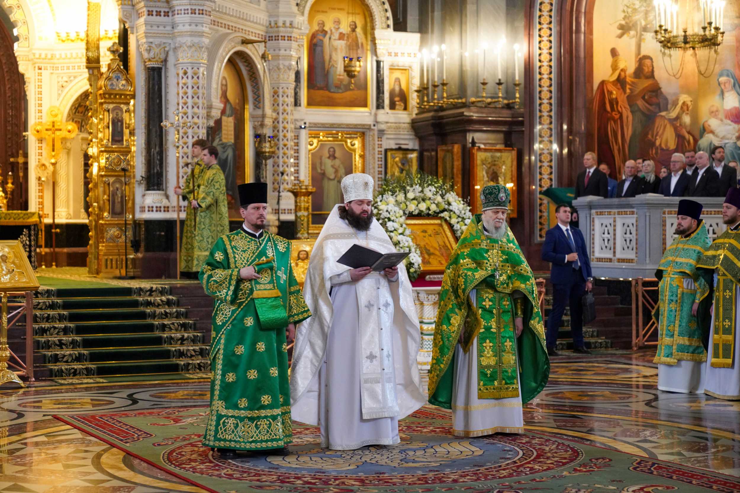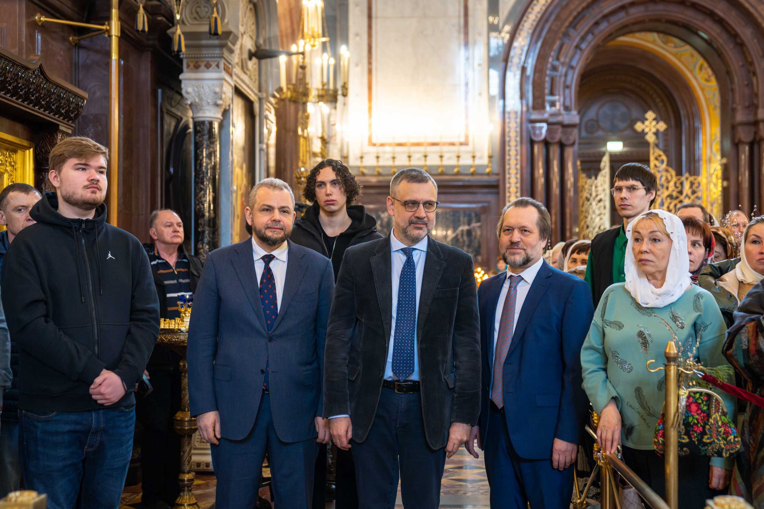 Богослужение в Храме Христа Спасителя посетили: заместитель председателя Государственной Думы Федерального Собрания Российской Федерации А.Ю. Кузнецова; председатель Комитета Совета Федерации ФС РФ по конституционному законодательству и государственному строительству А.А. Клишас; председатель Либерально-демократической партии России, руководитель фракции ЛДПР в Государственной Думе ФС РФ, председатель Комитета Государственной Думы ФС РФ по международным делам Л.Э. Слуцкий; председатель Синодального отдела по взаимоотношениям Церкви с обществом и СМИ В.Р. Легойда; член Совета Федерации ФС РФ от Красноярского края А.В. Усс; первый заместитель руководителя Администрации Президента РФ А.А. Громов; губернатор г. Севастополя М.В. Развозжаев; глава Одинцовского городского округа Московской области А.Р. Иванов; председатель Наблюдательного совета Фонда содействия возрождению традиций милосердия и благотворительности «Елисаветинско-Сергиевское просветительское общество», заместитель председателя Императорского православного палестинского общества А.В. Громова; главный врач Центральной клинической больницы святителя Алексия А.Ю. Заров; руководитель ювелирно-художественной мастерской «Апостол» И.С. Харьков.