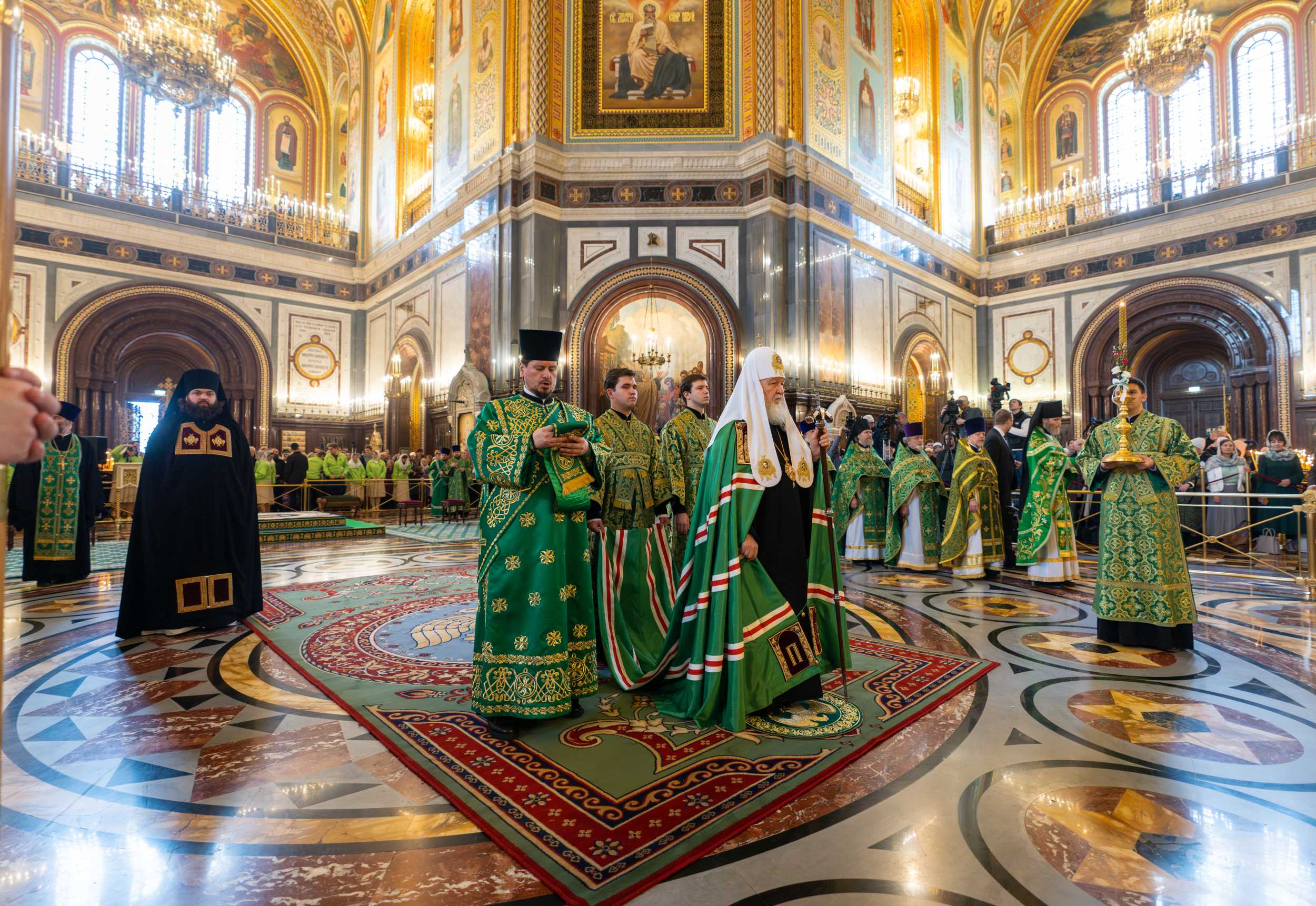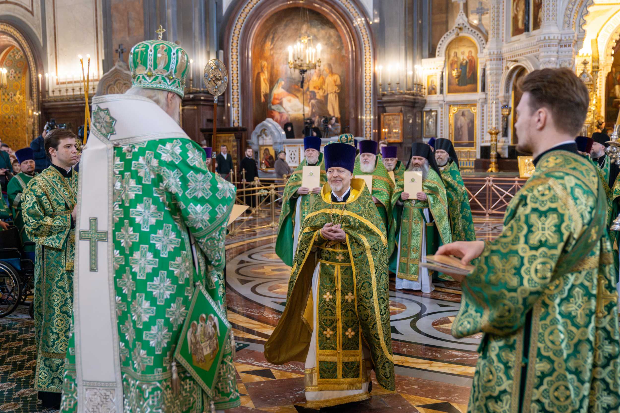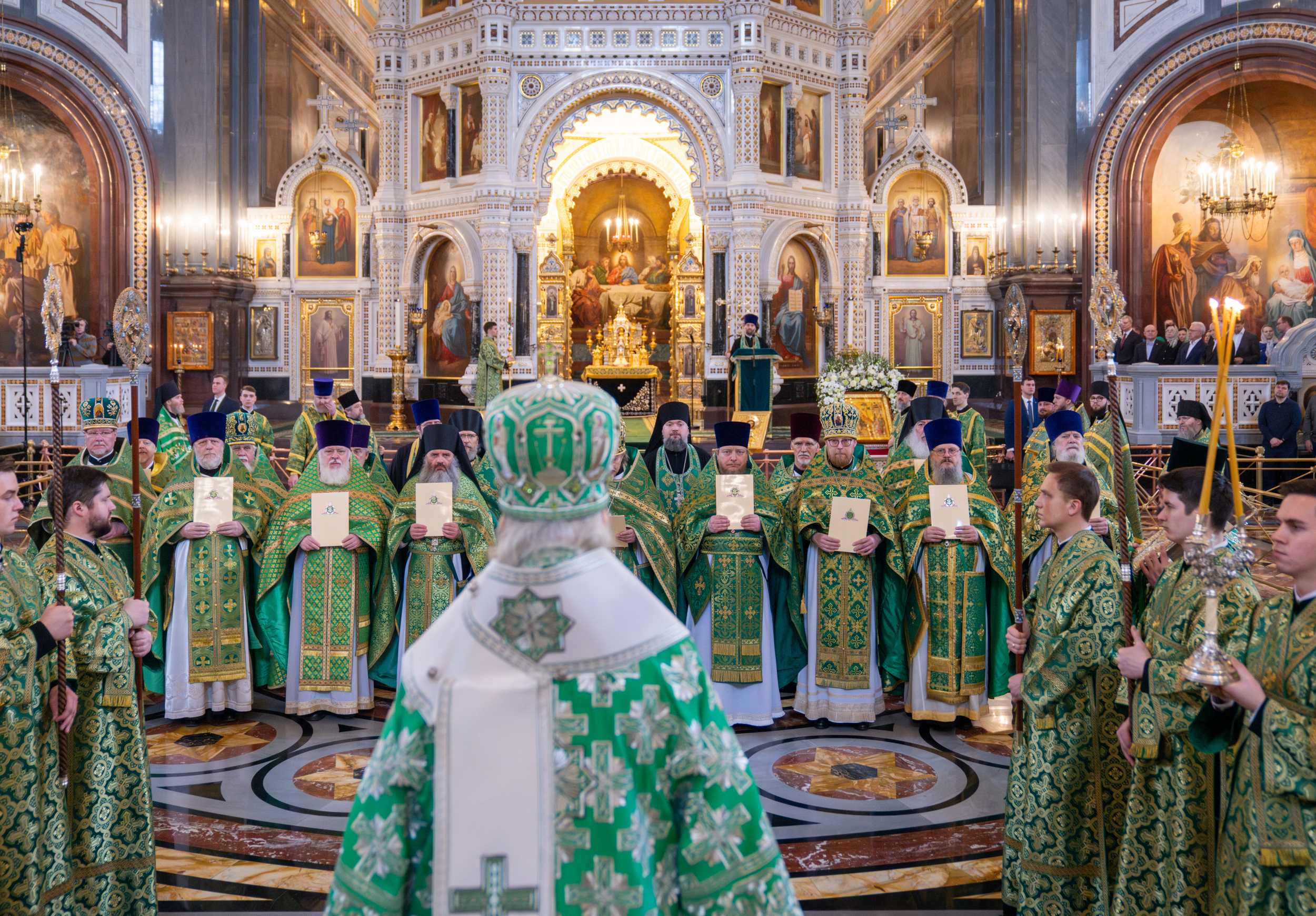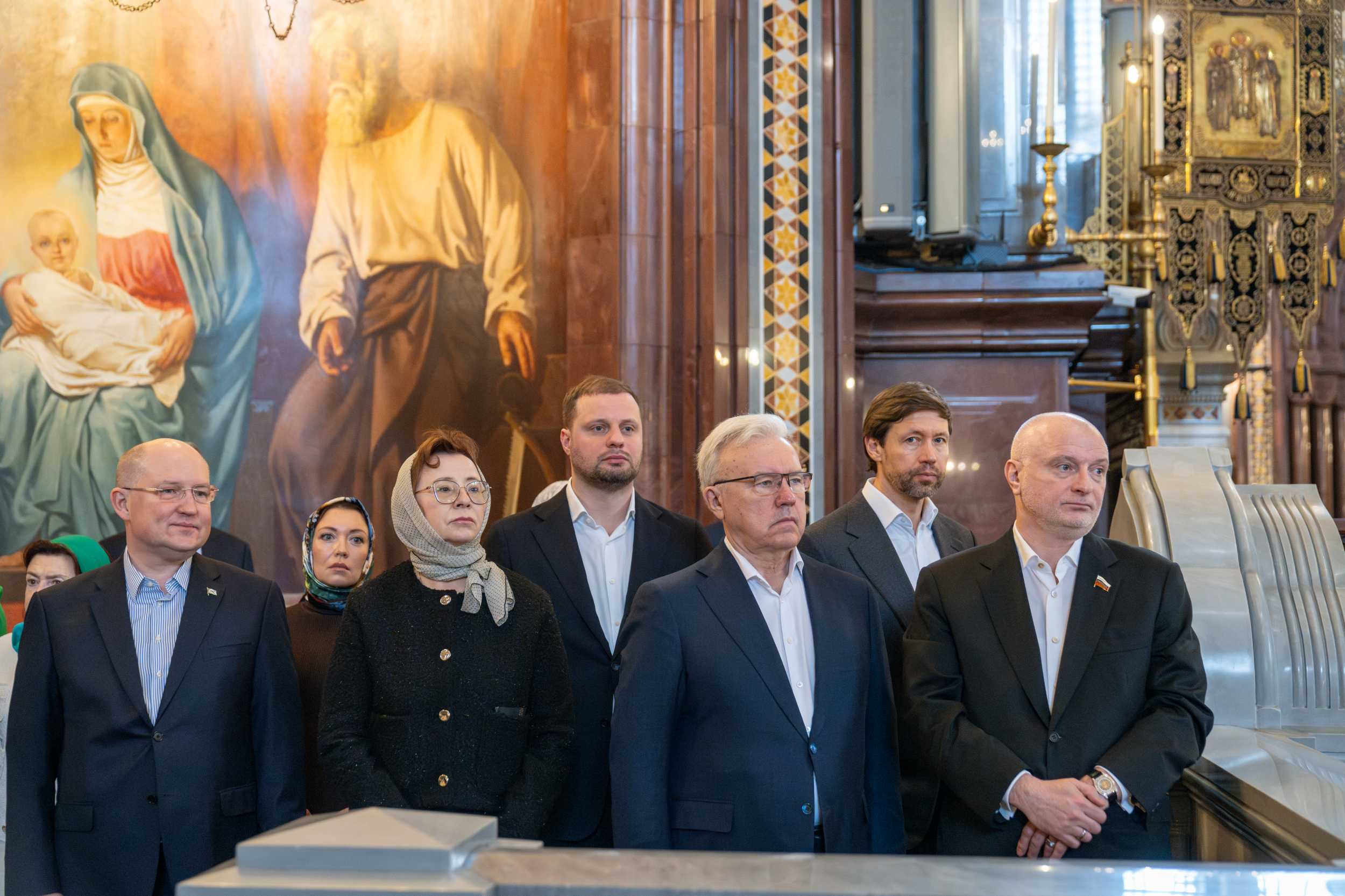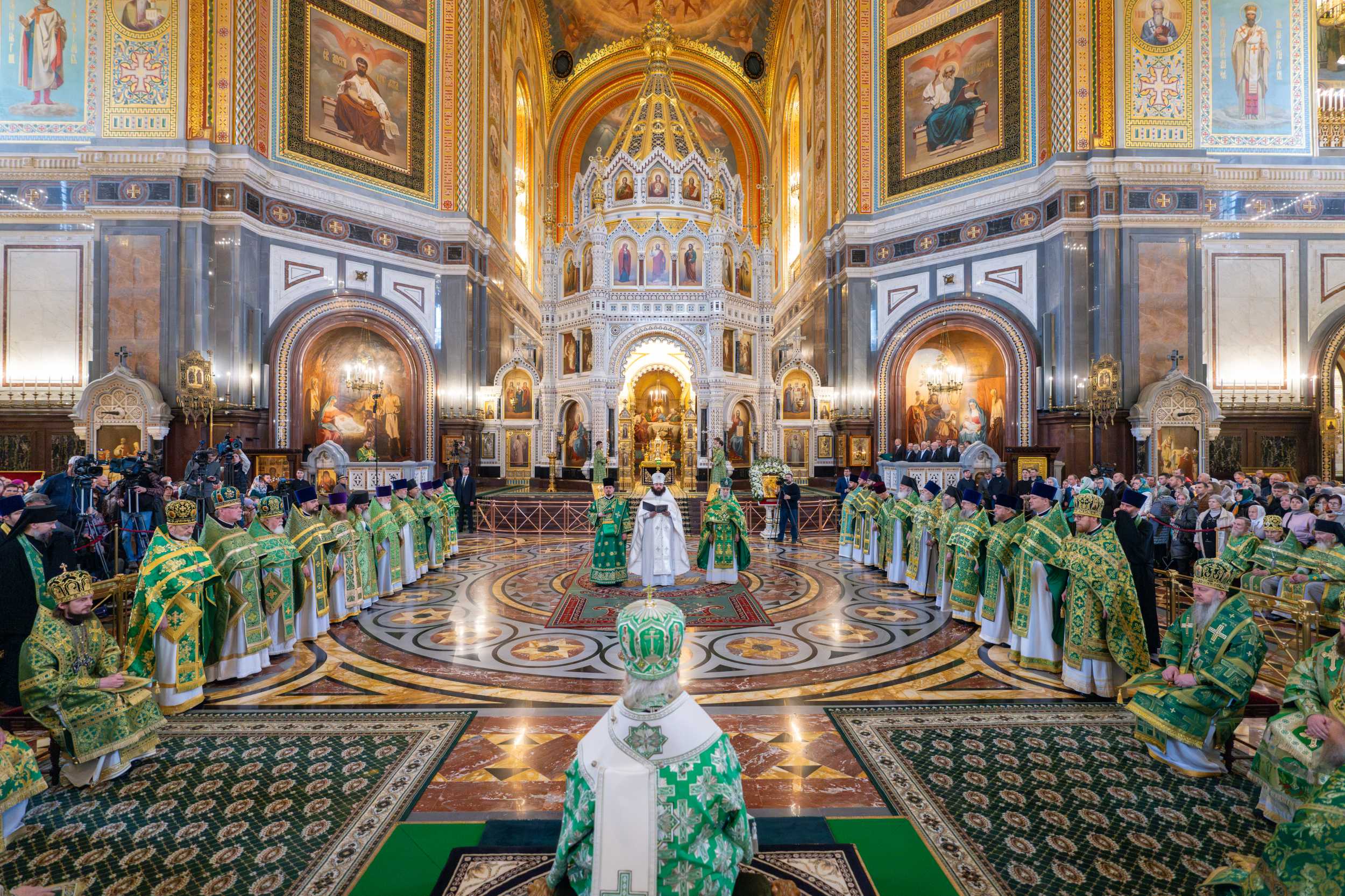 Богослужение в Храме Христа Спасителя посетили: заместитель председателя Государственной Думы Федерального Собрания Российской Федерации А.Ю. Кузнецова; председатель Комитета Совета Федерации ФС РФ по конституционному законодательству и государственному строительству А.А. Клишас; председатель Либерально-демократической партии России, руководитель фракции ЛДПР в Государственной Думе ФС РФ, председатель Комитета Государственной Думы ФС РФ по международным делам Л.Э. Слуцкий; председатель Синодального отдела по взаимоотношениям Церкви с обществом и СМИ В.Р. Легойда; член Совета Федерации ФС РФ от Красноярского края А.В. Усс; первый заместитель руководителя Администрации Президента РФ А.А. Громов; губернатор г. Севастополя М.В. Развозжаев; глава Одинцовского городского округа Московской области А.Р. Иванов; председатель Наблюдательного совета Фонда содействия возрождению традиций милосердия и благотворительности «Елисаветинско-Сергиевское просветительское общество», заместитель председателя Императорского православного палестинского общества А.В. Громова; главный врач Центральной клинической больницы святителя Алексия А.Ю. Заров; руководитель ювелирно-художественной мастерской «Апостол» И.С. Харьков.