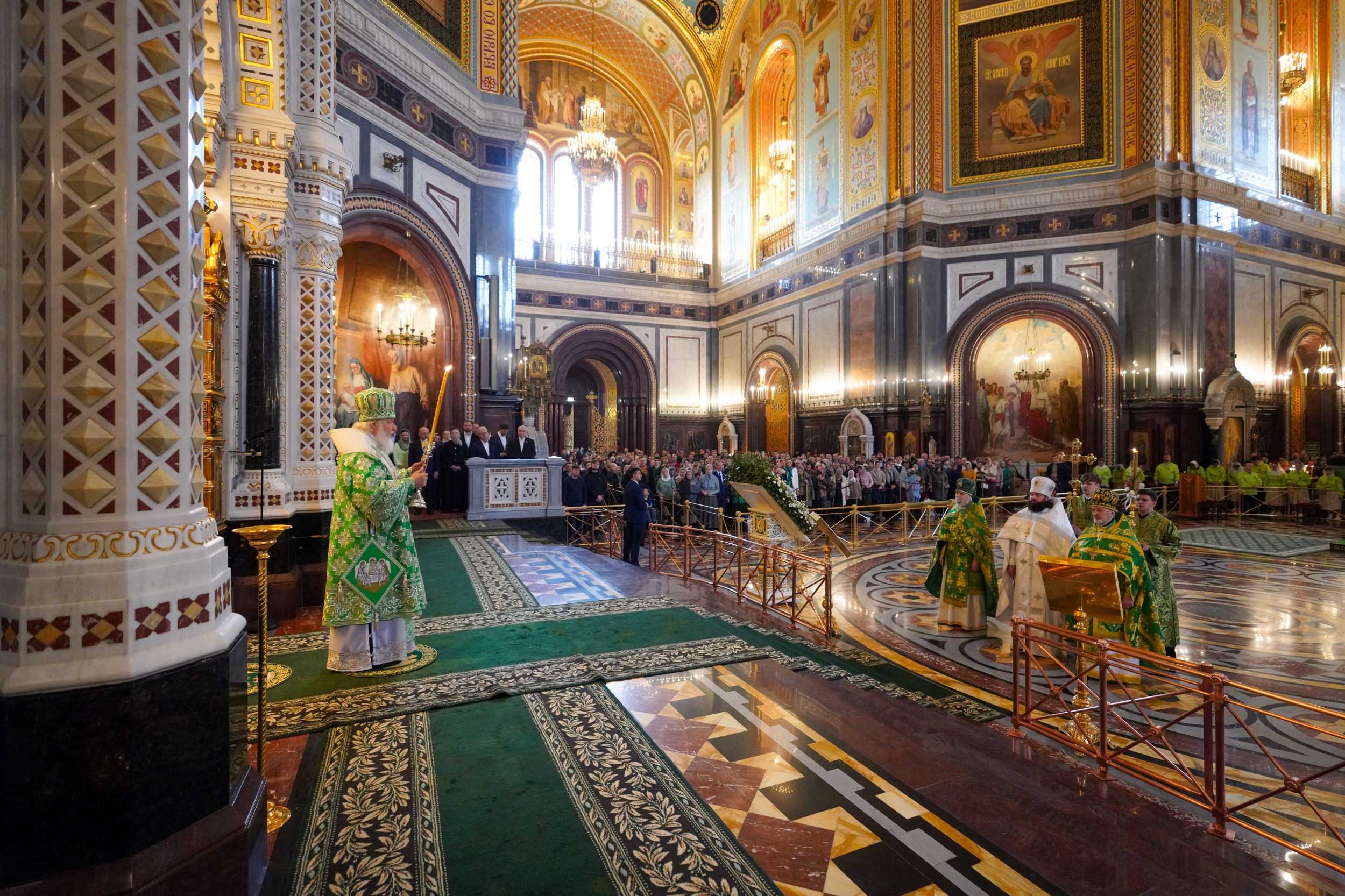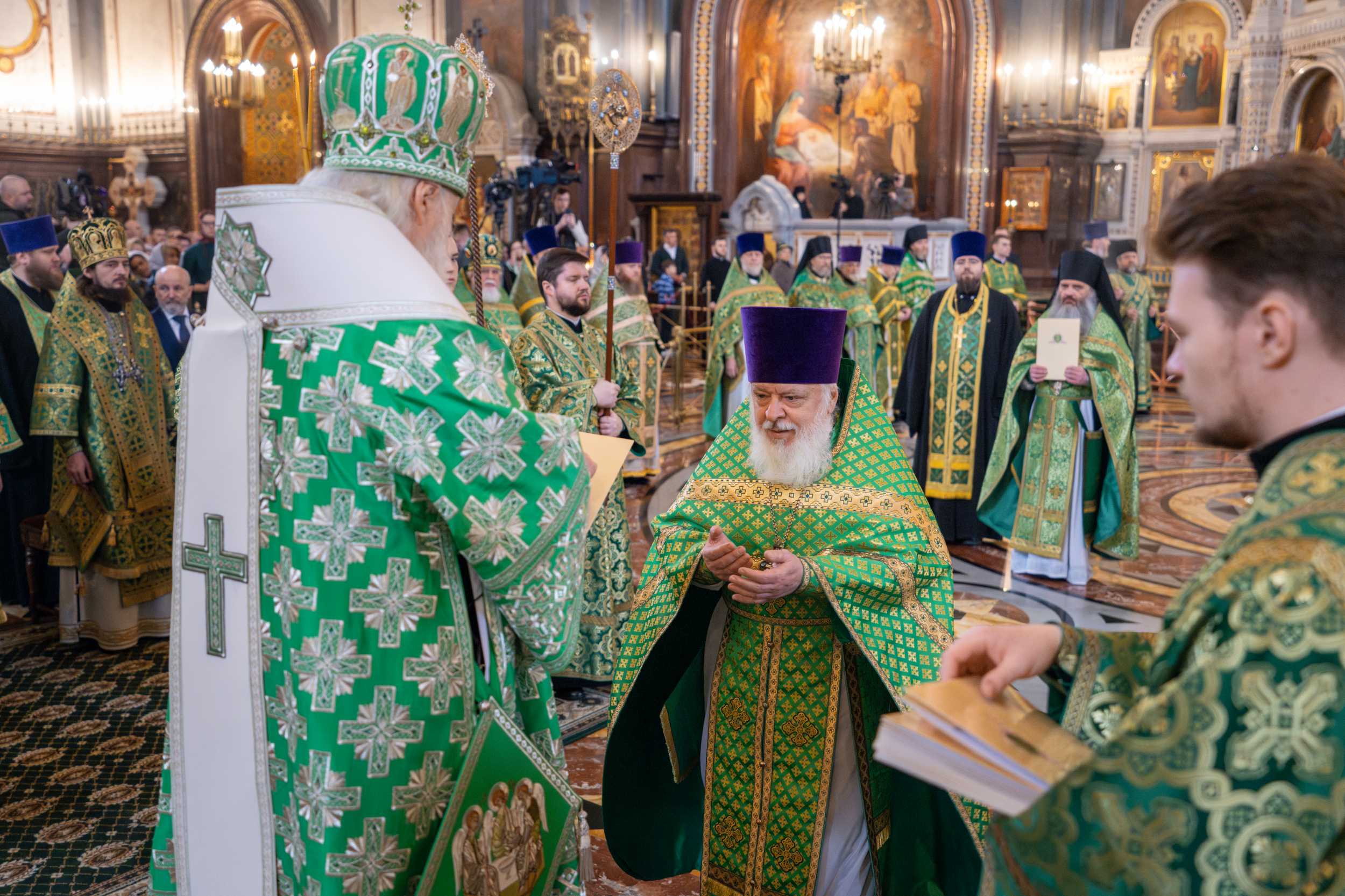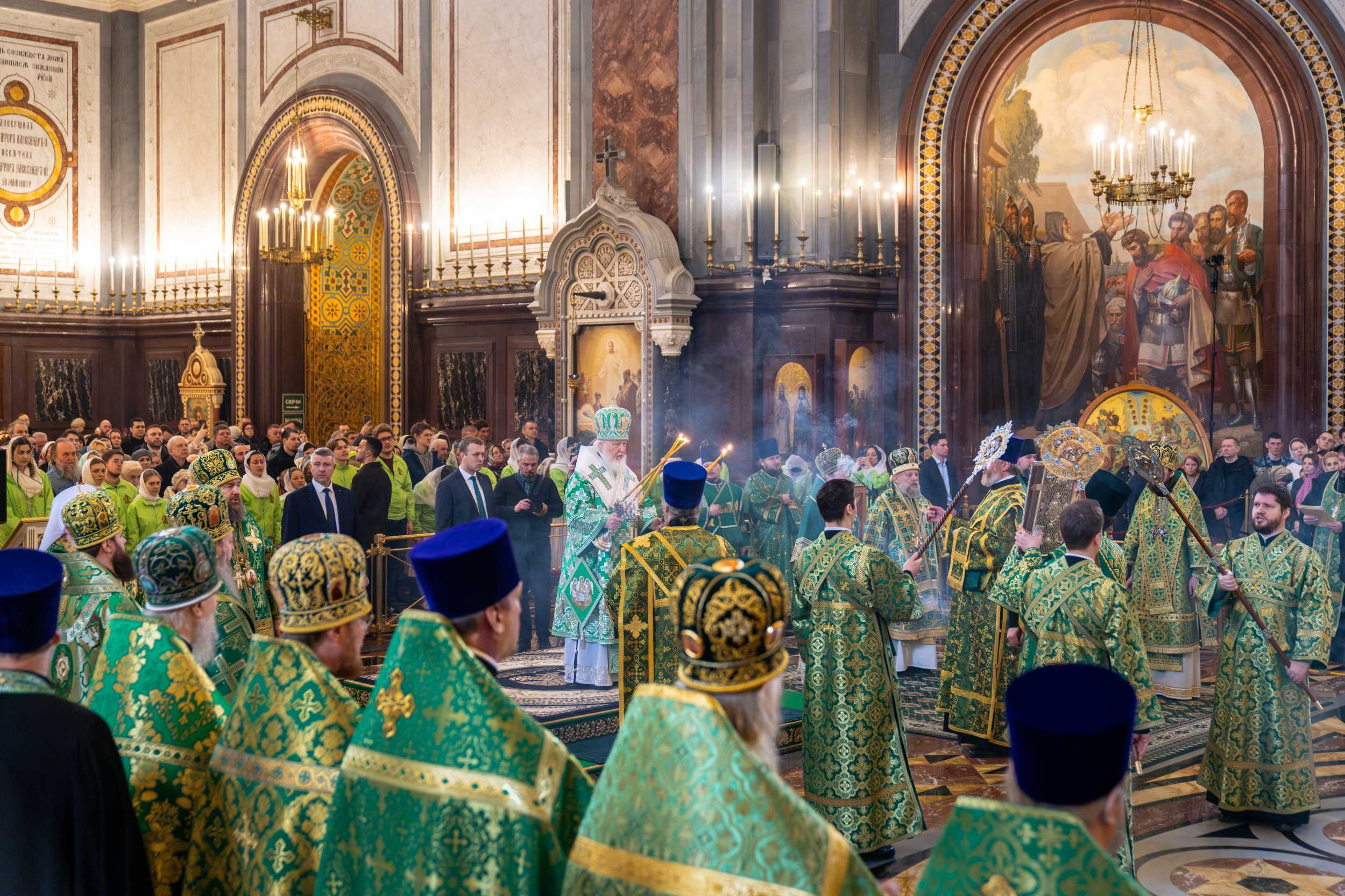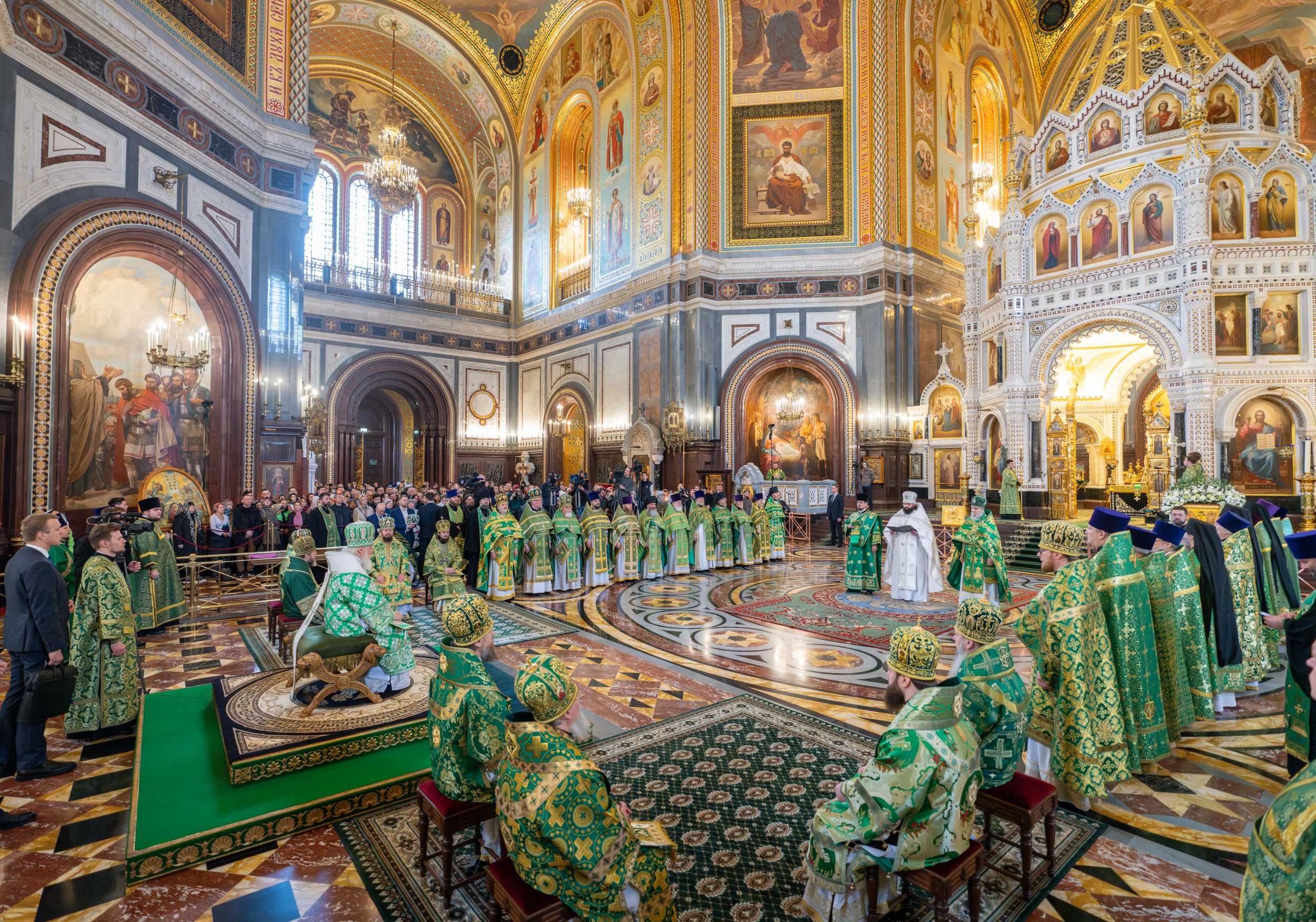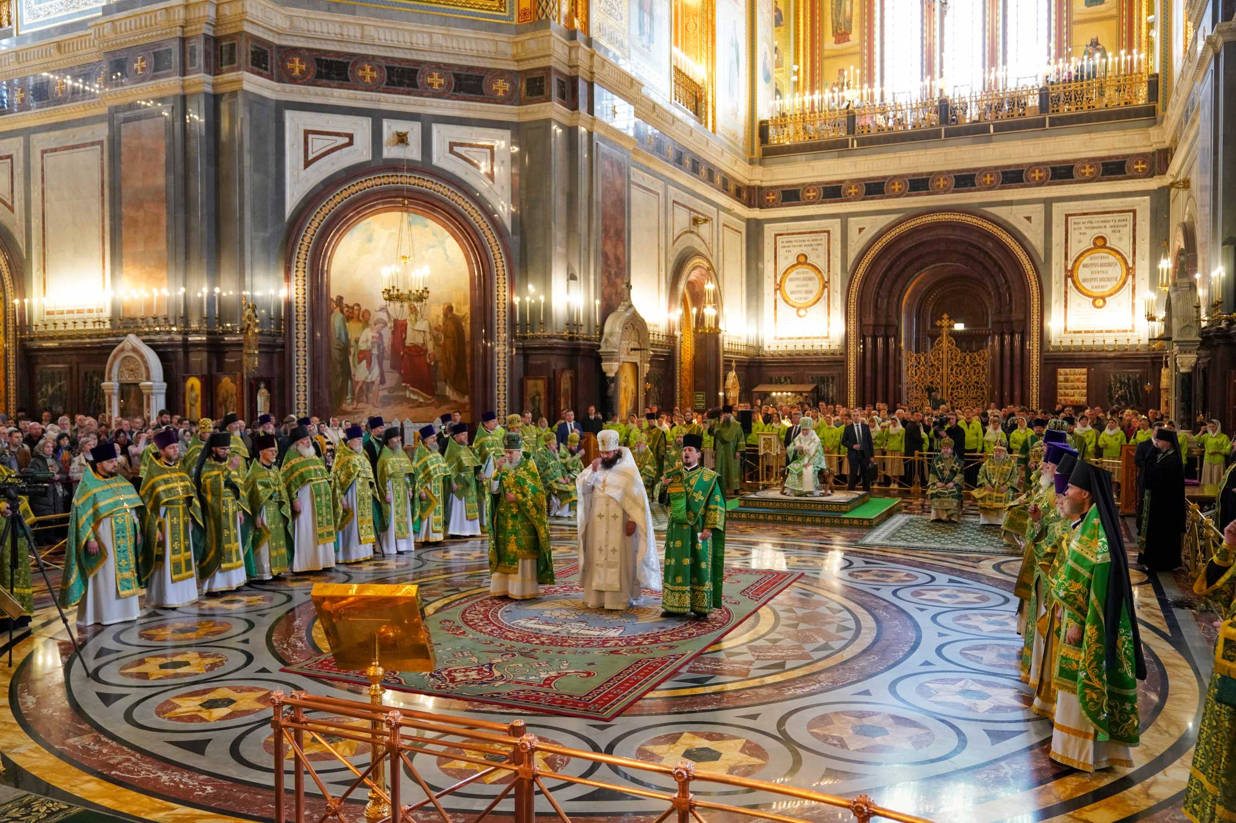 Богослужение в Храме Христа Спасителя посетили: заместитель председателя Государственной Думы Федерального Собрания Российской Федерации А.Ю. Кузнецова; председатель Комитета Совета Федерации ФС РФ по конституционному законодательству и государственному строительству А.А. Клишас; председатель Либерально-демократической партии России, руководитель фракции ЛДПР в Государственной Думе ФС РФ, председатель Комитета Государственной Думы ФС РФ по международным делам Л.Э. Слуцкий; председатель Синодального отдела по взаимоотношениям Церкви с обществом и СМИ В.Р. Легойда; член Совета Федерации ФС РФ от Красноярского края А.В. Усс; первый заместитель руководителя Администрации Президента РФ А.А. Громов; губернатор г. Севастополя М.В. Развозжаев; глава Одинцовского городского округа Московской области А.Р. Иванов; председатель Наблюдательного совета Фонда содействия возрождению традиций милосердия и благотворительности «Елисаветинско-Сергиевское просветительское общество», заместитель председателя Императорского православного палестинского общества А.В. Громова; главный врач Центральной клинической больницы святителя Алексия А.Ю. Заров; руководитель ювелирно-художественной мастерской «Апостол» И.С. Харьков.