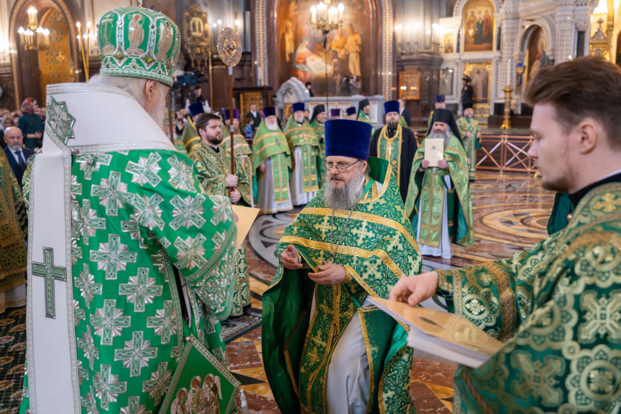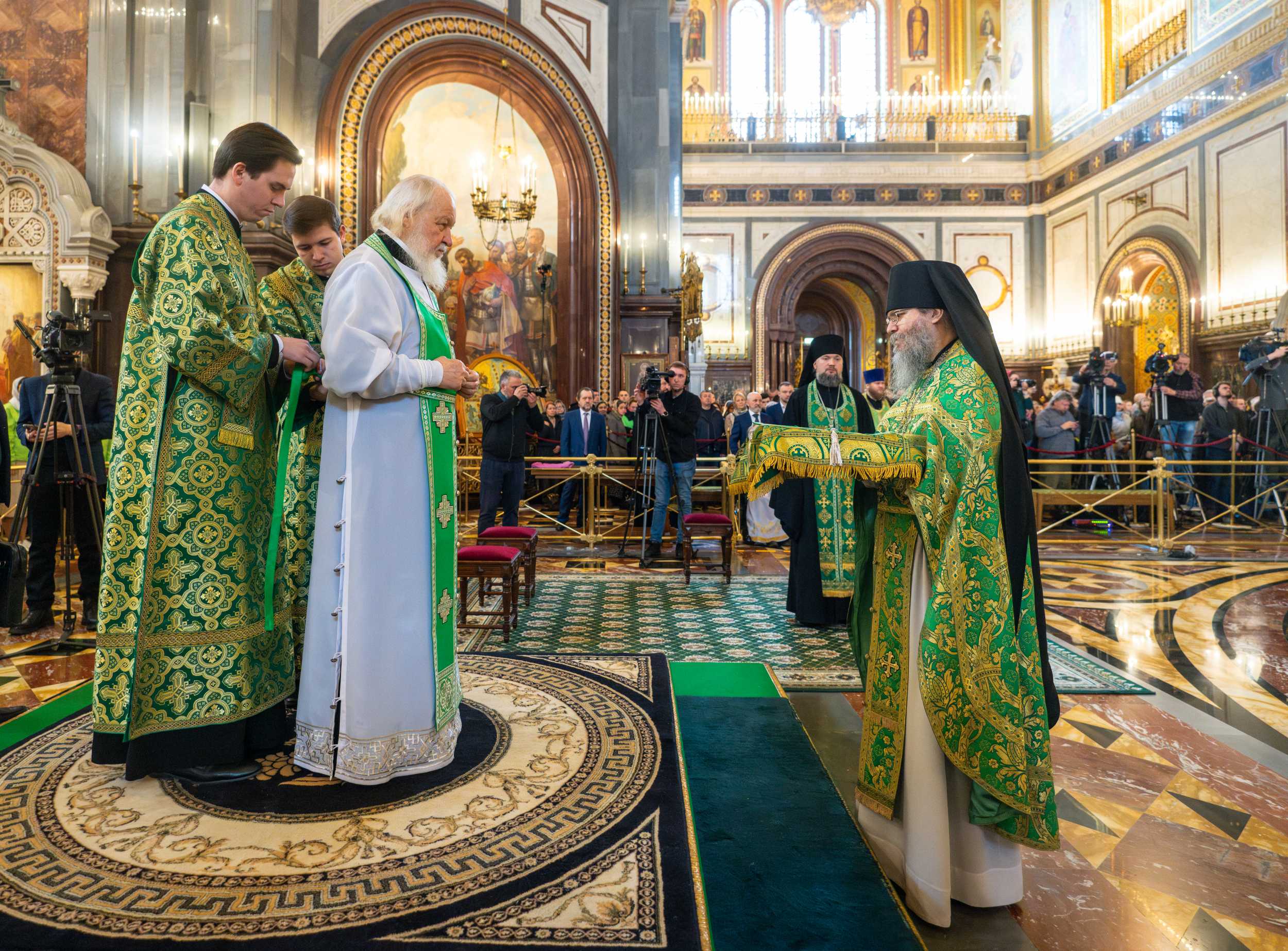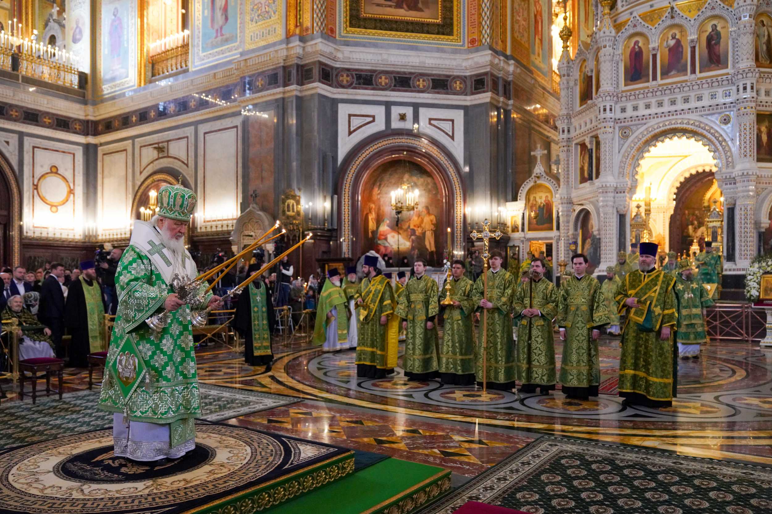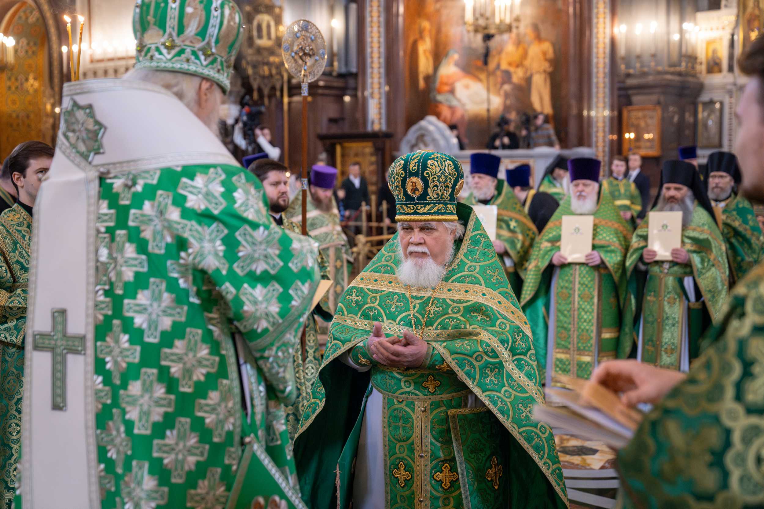 Богослужение в Храме Христа Спасителя посетили: заместитель председателя Государственной Думы Федерального Собрания Российской Федерации А.Ю. Кузнецова; председатель Комитета Совета Федерации ФС РФ по конституционному законодательству и государственному строительству А.А. Клишас; председатель Либерально-демократической партии России, руководитель фракции ЛДПР в Государственной Думе ФС РФ, председатель Комитета Государственной Думы ФС РФ по международным делам Л.Э. Слуцкий; председатель Синодального отдела по взаимоотношениям Церкви с обществом и СМИ В.Р. Легойда; член Совета Федерации ФС РФ от Красноярского края А.В. Усс; первый заместитель руководителя Администрации Президента РФ А.А. Громов; губернатор г. Севастополя М.В. Развозжаев; глава Одинцовского городского округа Московской области А.Р. Иванов; председатель Наблюдательного совета Фонда содействия возрождению традиций милосердия и благотворительности «Елисаветинско-Сергиевское просветительское общество», заместитель председателя Императорского православного палестинского общества А.В. Громова; главный врач Центральной клинической больницы святителя Алексия А.Ю. Заров; руководитель ювелирно-художественной мастерской «Апостол» И.С. Харьков.