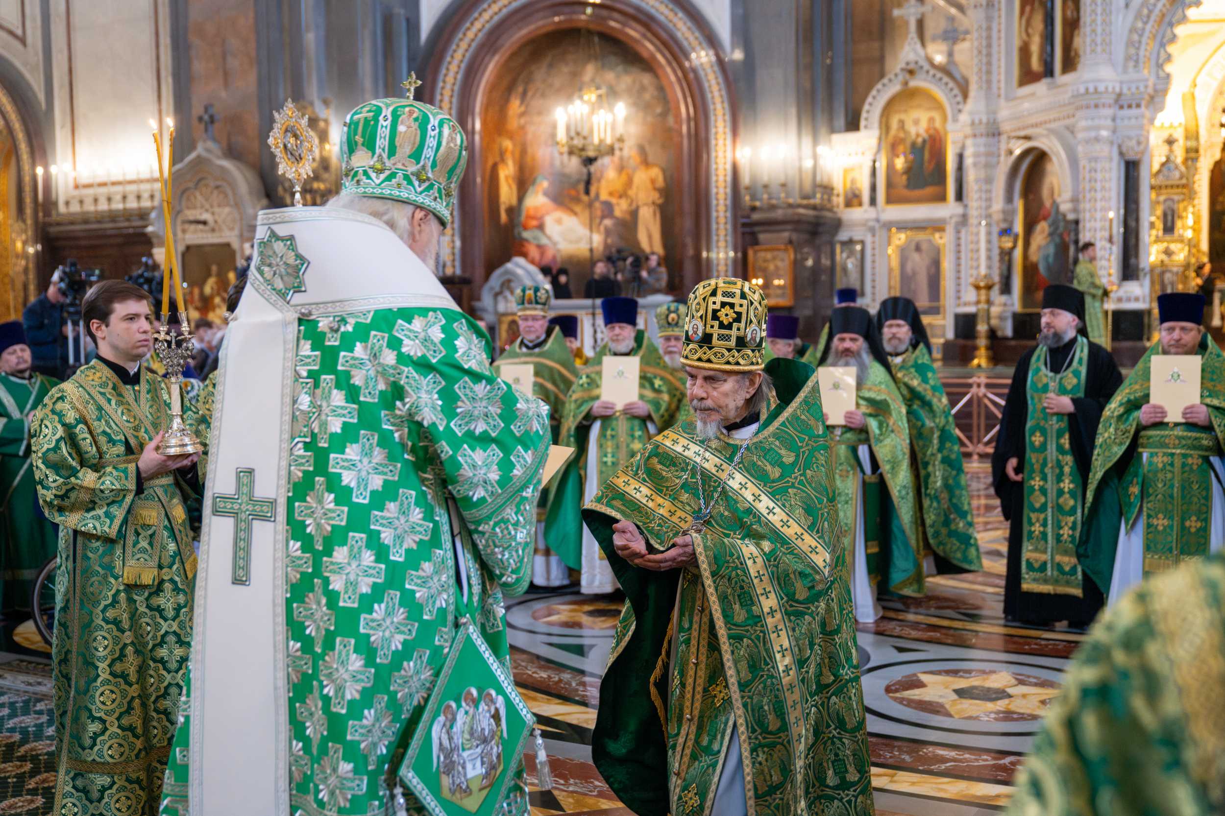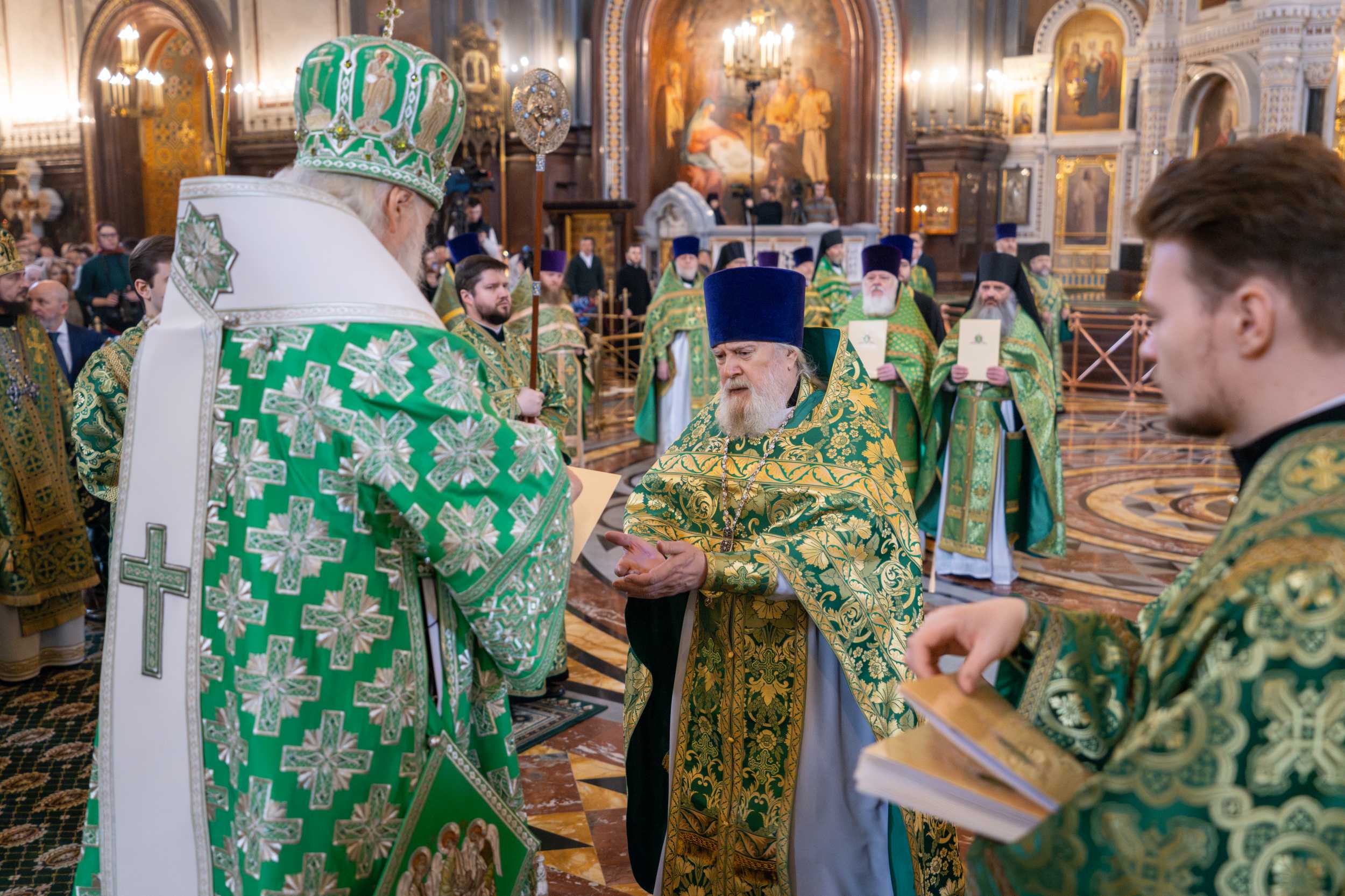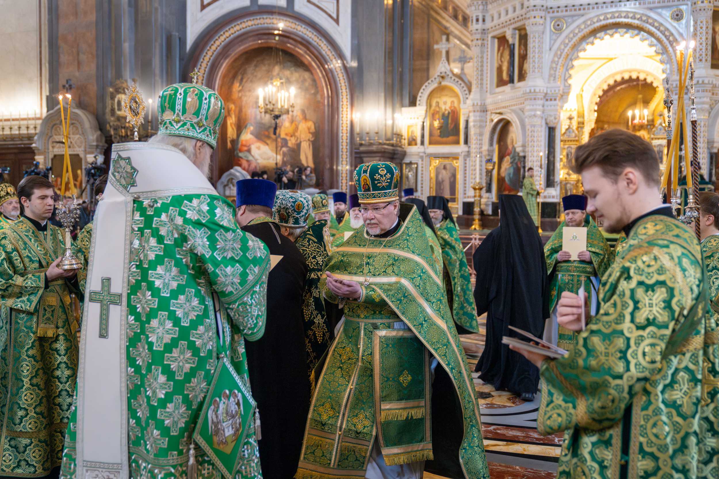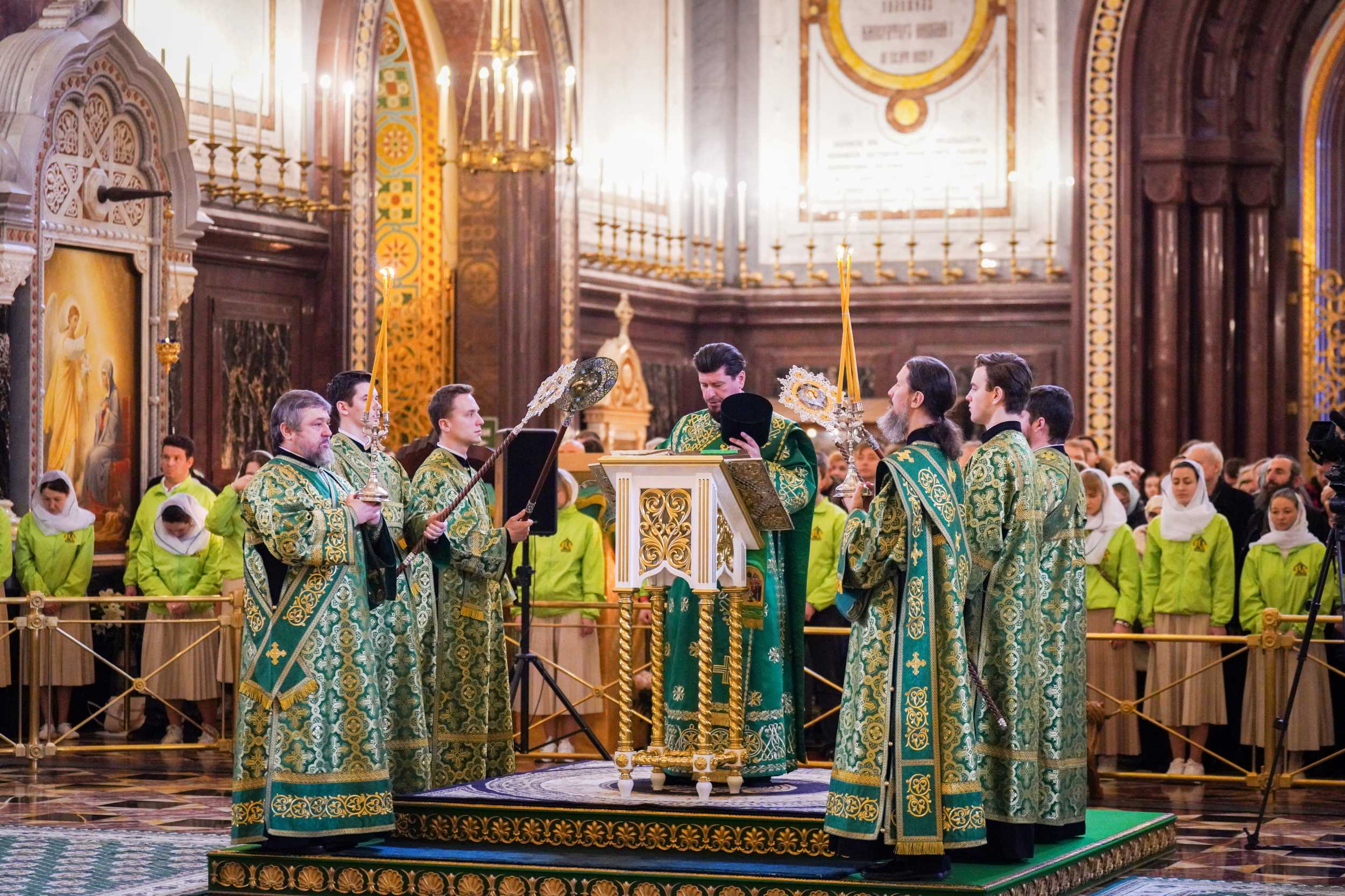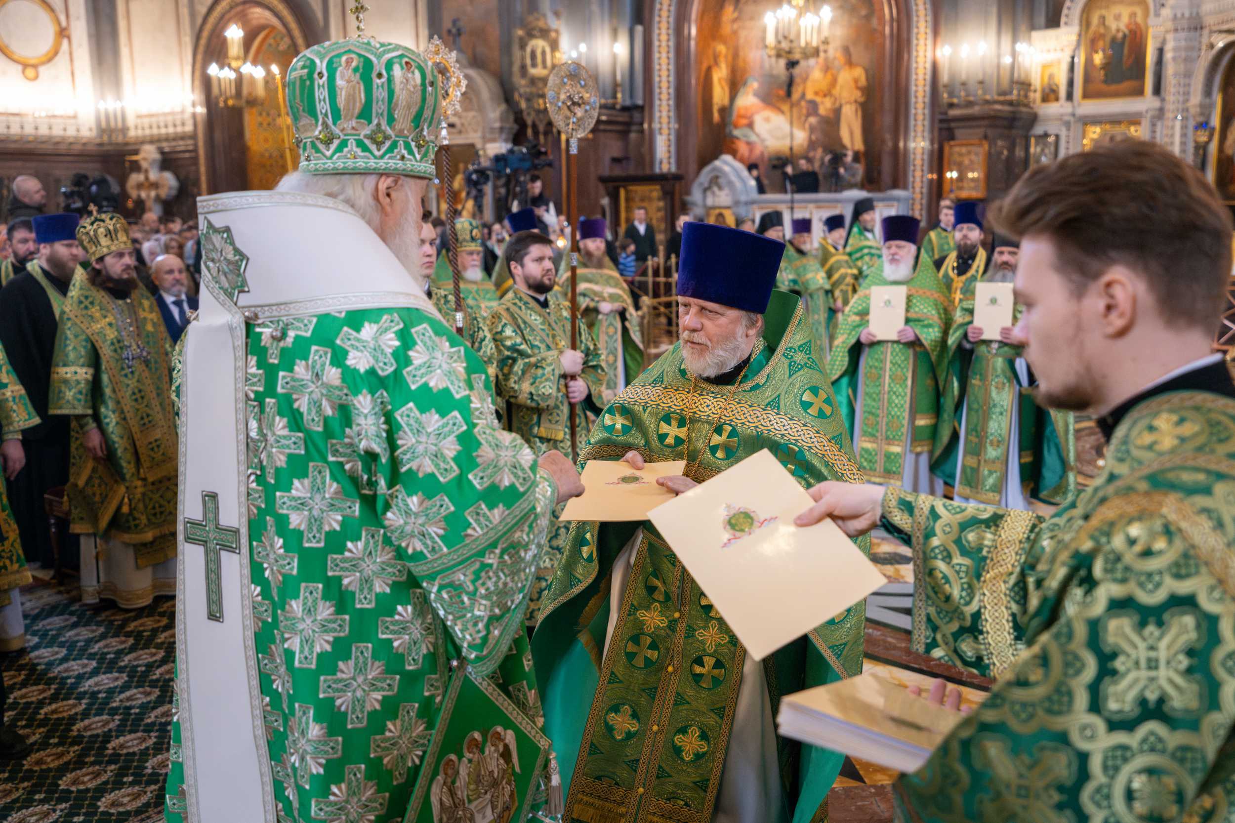Богослужение в Храме Христа Спасителя посетили: заместитель председателя Государственной Думы Федерального Собрания Российской Федерации А.Ю. Кузнецова; председатель Комитета Совета Федерации ФС РФ по конституционному законодательству и государственному строительству А.А. Клишас; председатель Либерально-демократической партии России, руководитель фракции ЛДПР в Государственной Думе ФС РФ, председатель Комитета Государственной Думы ФС РФ по международным делам Л.Э. Слуцкий; председатель Синодального отдела по взаимоотношениям Церкви с обществом и СМИ В.Р. Легойда; член Совета Федерации ФС РФ от Красноярского края А.В. Усс; первый заместитель руководителя Администрации Президента РФ А.А. Громов; губернатор г. Севастополя М.В. Развозжаев; глава Одинцовского городского округа Московской области А.Р. Иванов; председатель Наблюдательного совета Фонда содействия возрождению традиций милосердия и благотворительности «Елисаветинско-Сергиевское просветительское общество», заместитель председателя Императорского православного палестинского общества А.В. Громова; главный врач Центральной клинической больницы святителя Алексия А.Ю. Заров; руководитель ювелирно-художественной мастерской «Апостол» И.С. Харьков.