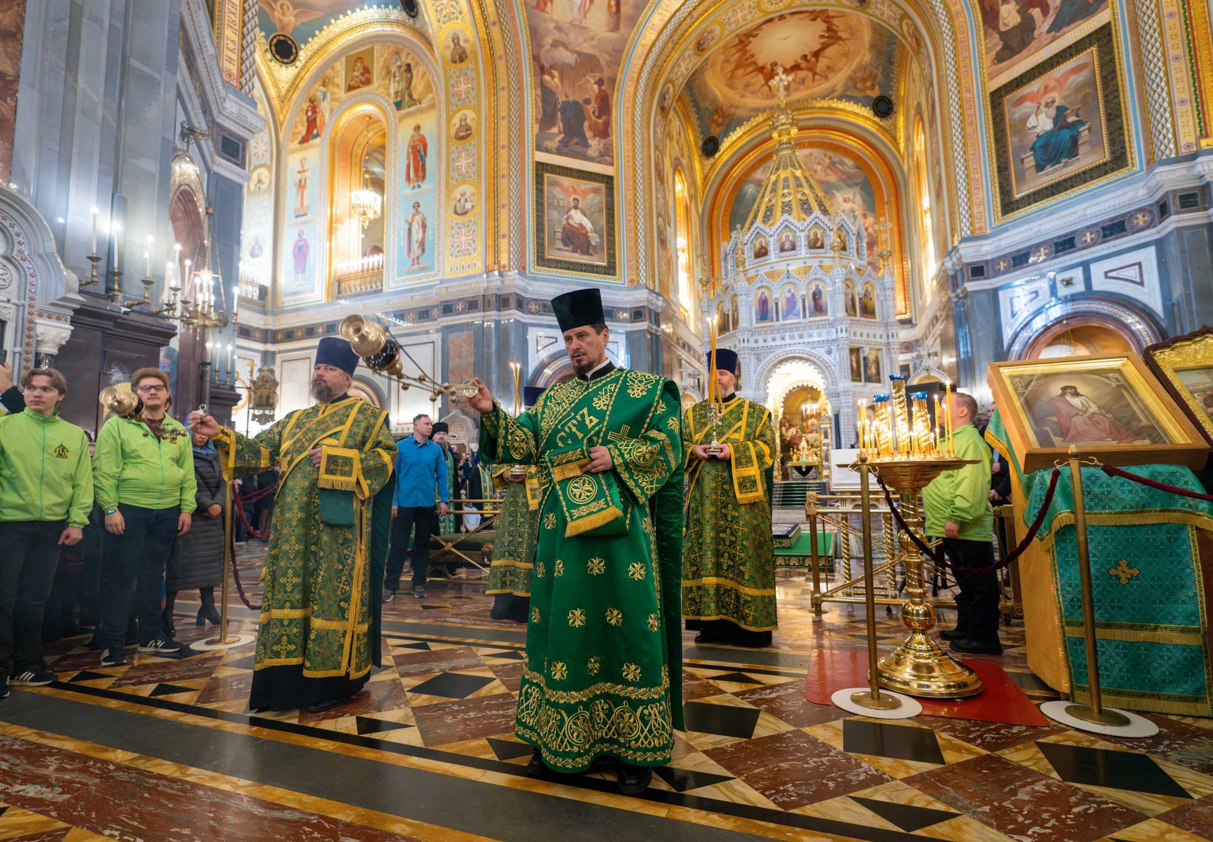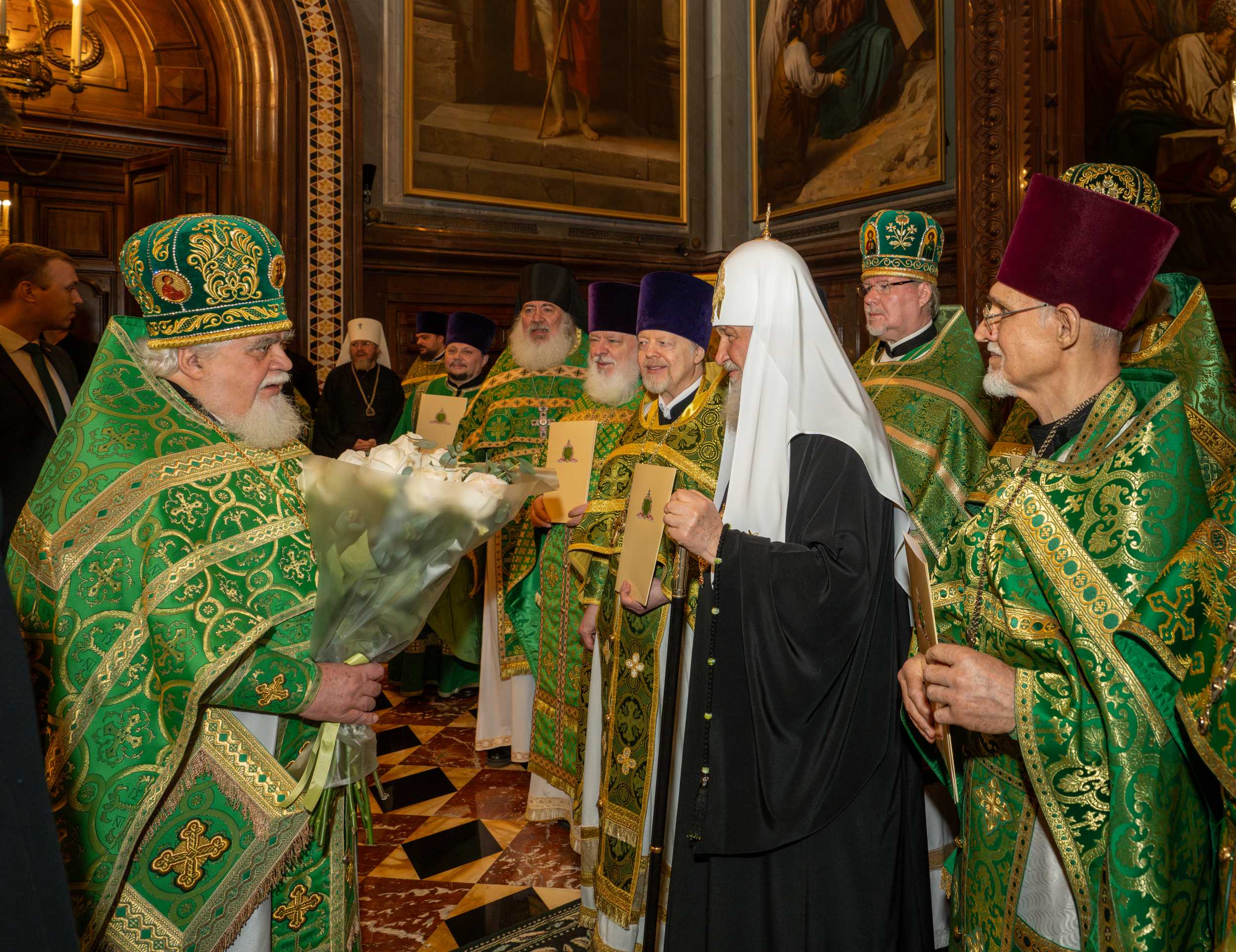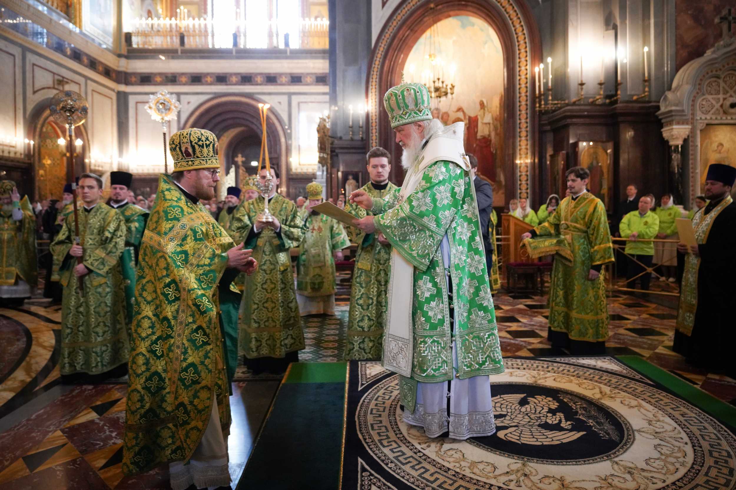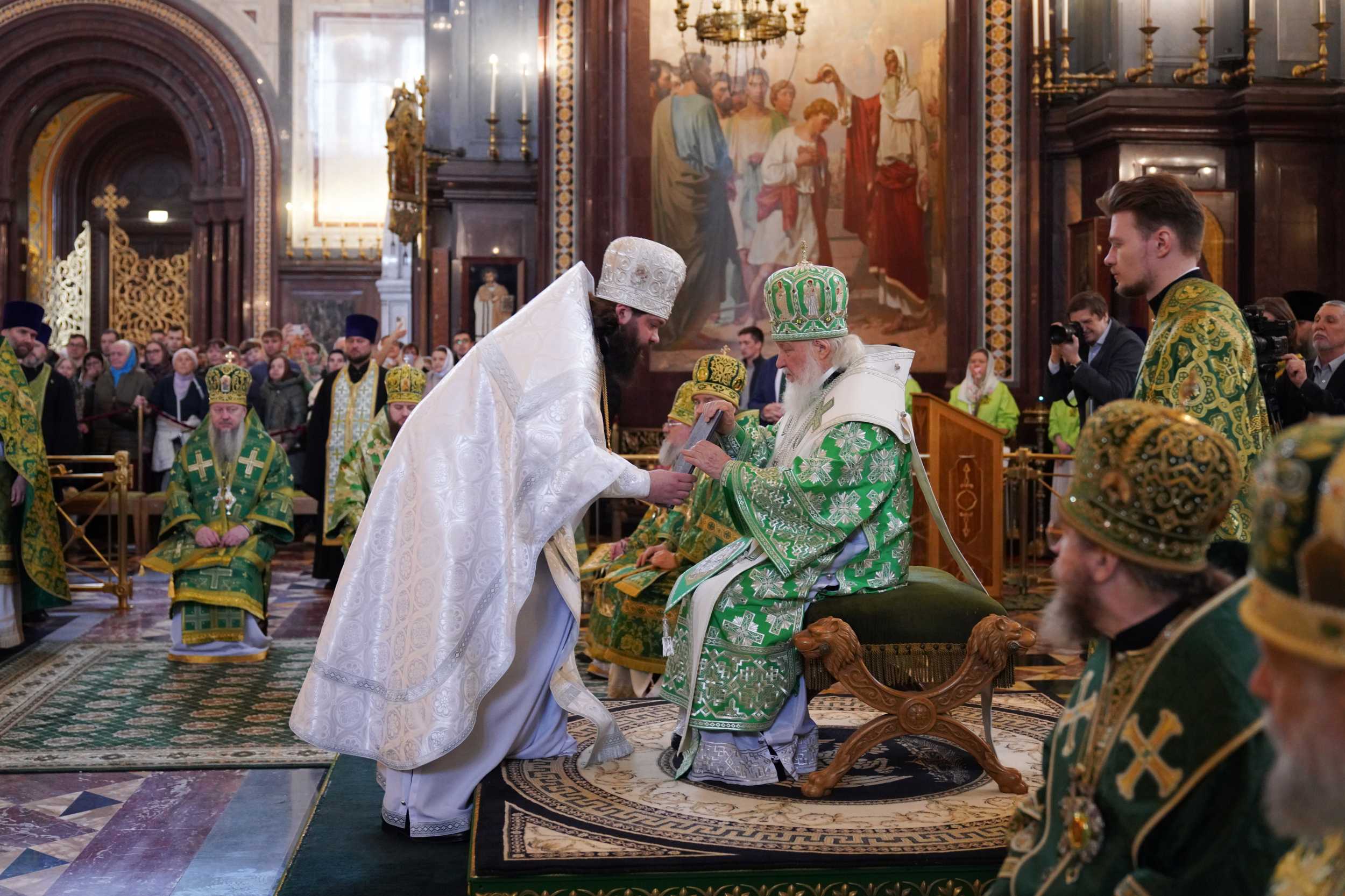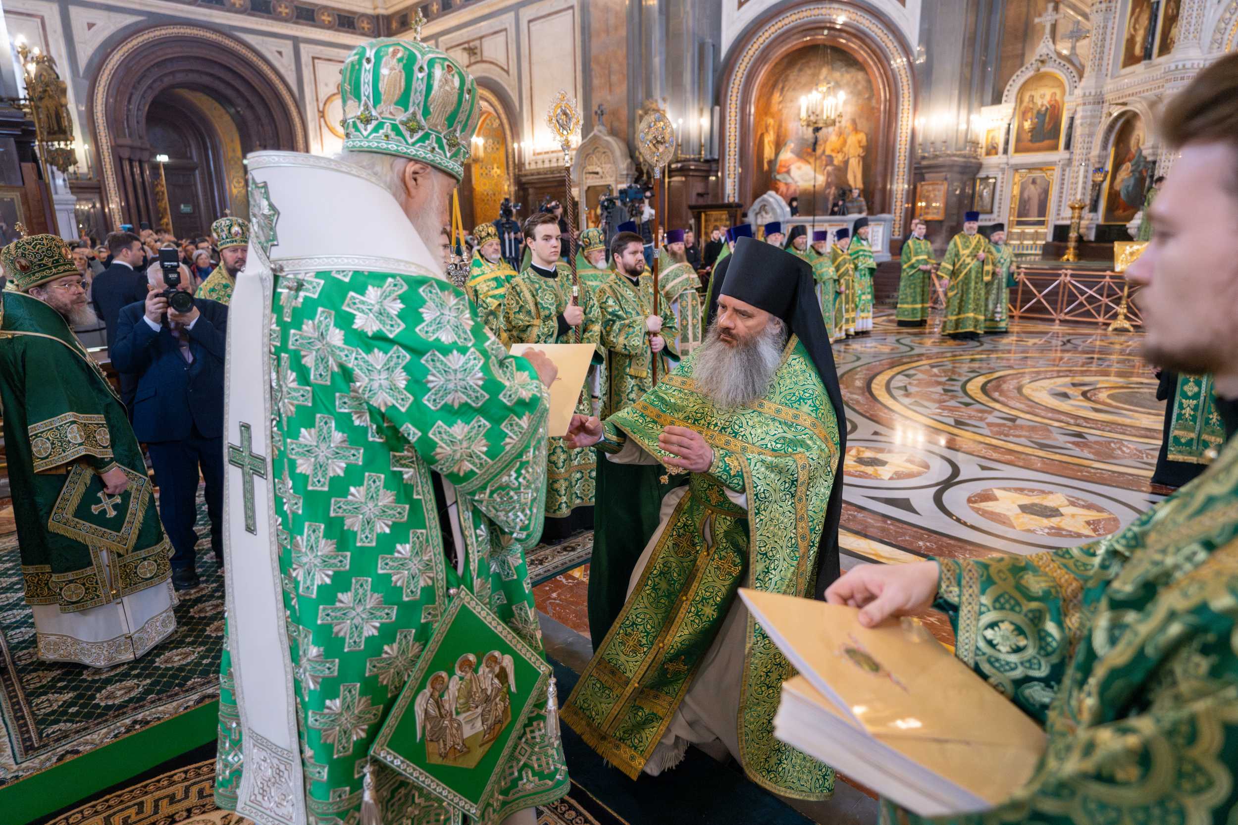 Богослужение в Храме Христа Спасителя посетили: заместитель председателя Государственной Думы Федерального Собрания Российской Федерации А.Ю. Кузнецова; председатель Комитета Совета Федерации ФС РФ по конституционному законодательству и государственному строительству А.А. Клишас; председатель Либерально-демократической партии России, руководитель фракции ЛДПР в Государственной Думе ФС РФ, председатель Комитета Государственной Думы ФС РФ по международным делам Л.Э. Слуцкий; председатель Синодального отдела по взаимоотношениям Церкви с обществом и СМИ В.Р. Легойда; член Совета Федерации ФС РФ от Красноярского края А.В. Усс; первый заместитель руководителя Администрации Президента РФ А.А. Громов; губернатор г. Севастополя М.В. Развозжаев; глава Одинцовского городского округа Московской области А.Р. Иванов; председатель Наблюдательного совета Фонда содействия возрождению традиций милосердия и благотворительности «Елисаветинско-Сергиевское просветительское общество», заместитель председателя Императорского православного палестинского общества А.В. Громова; главный врач Центральной клинической больницы святителя Алексия А.Ю. Заров; руководитель ювелирно-художественной мастерской «Апостол» И.С. Харьков.