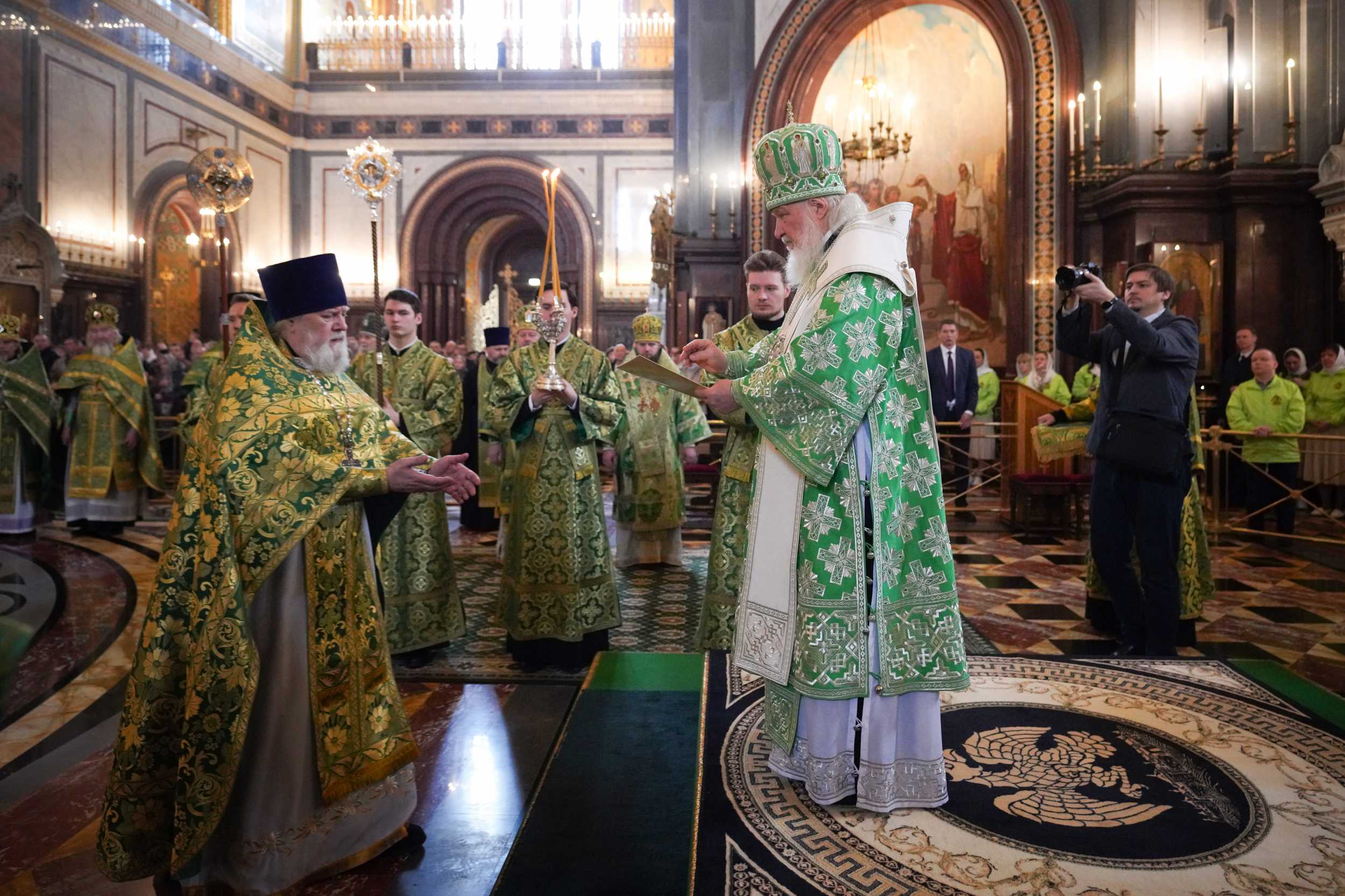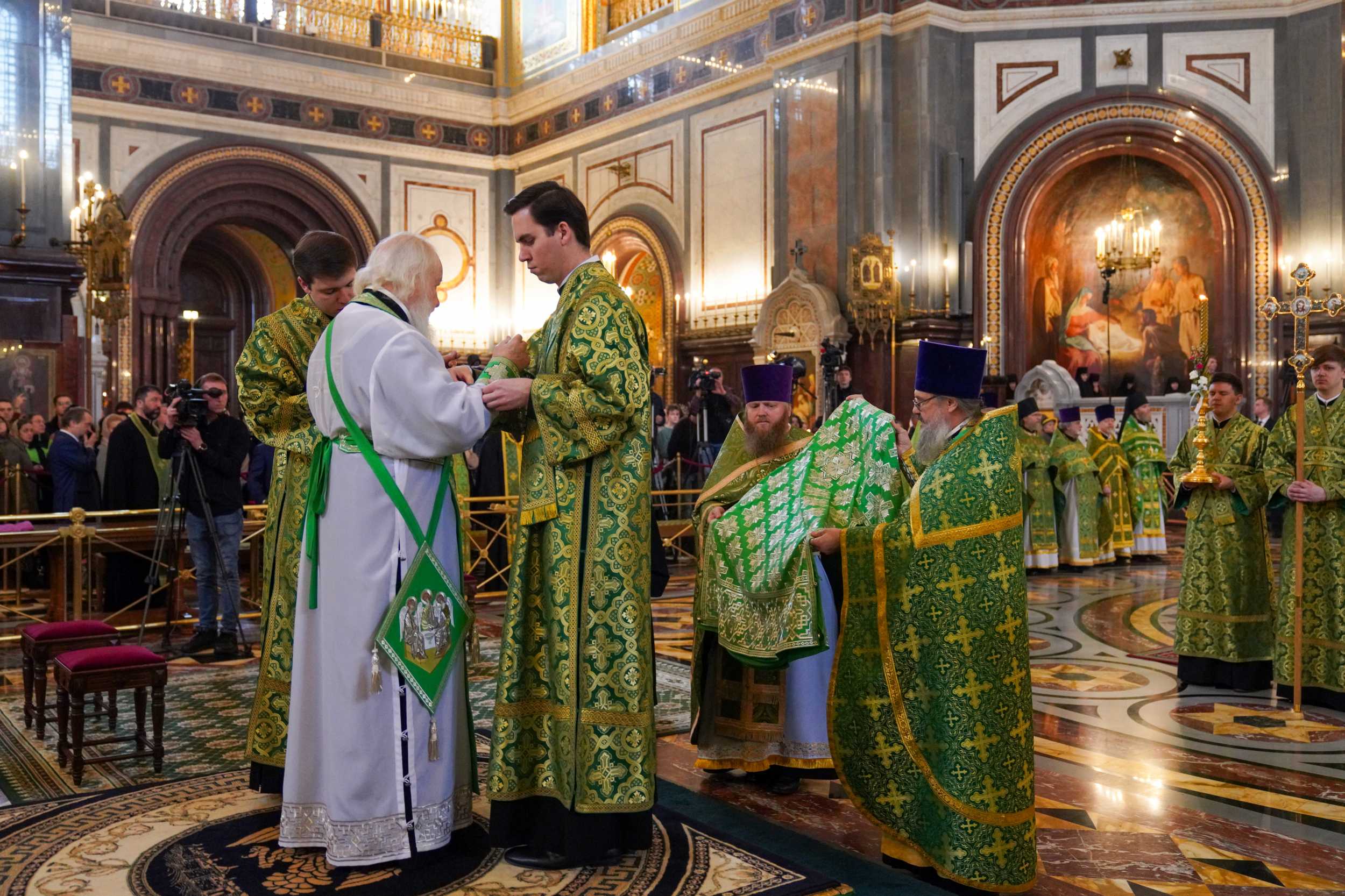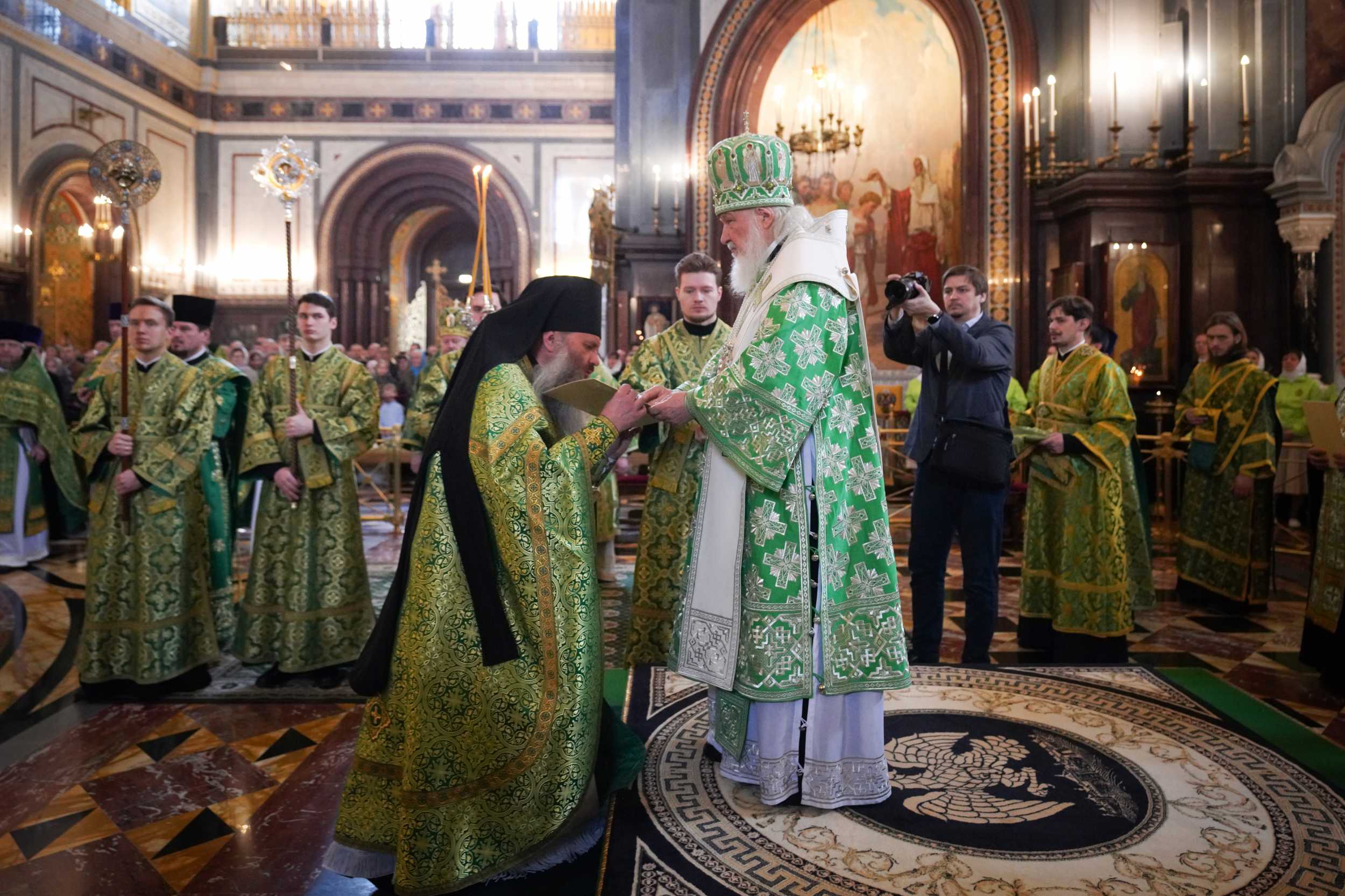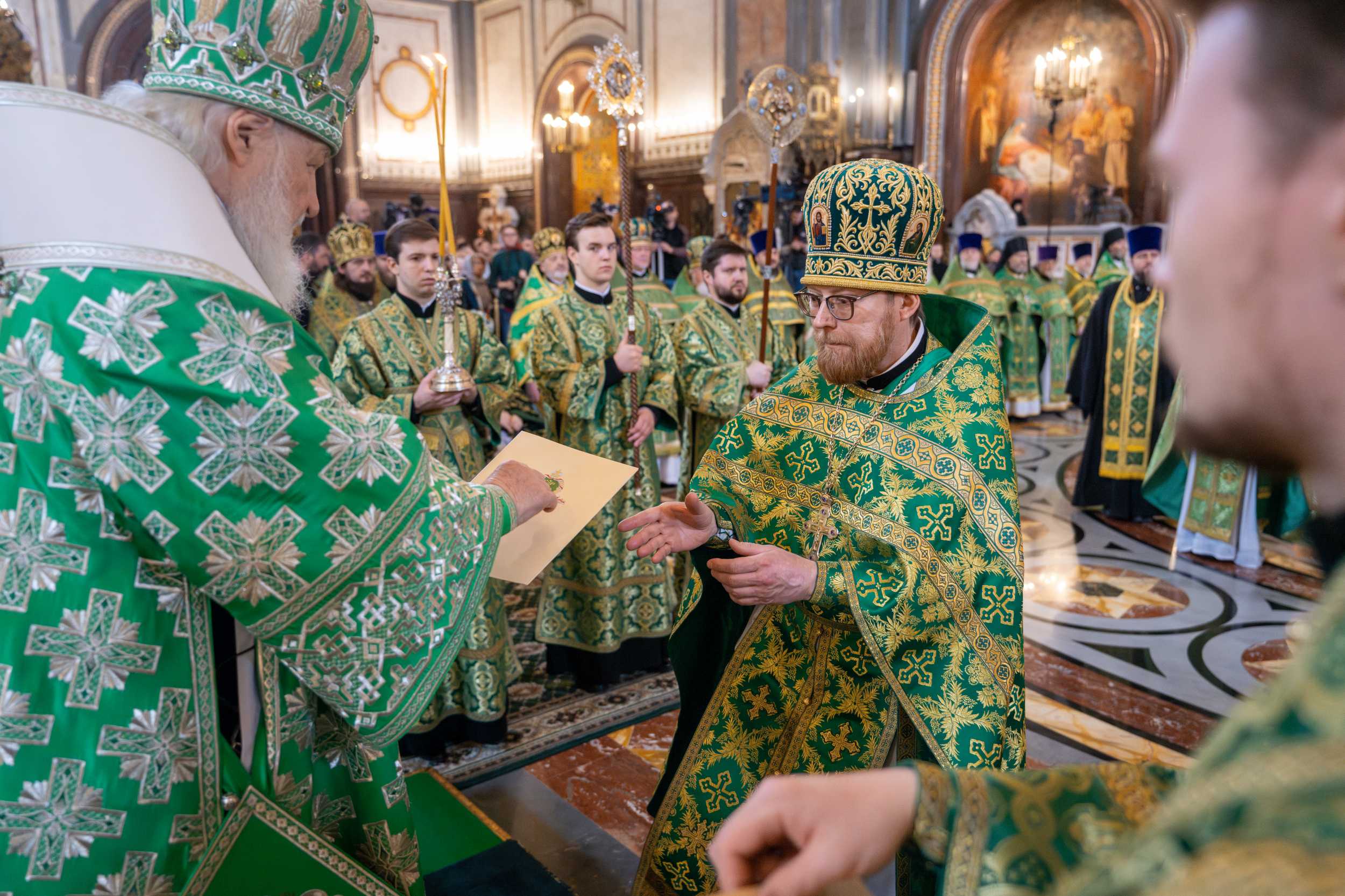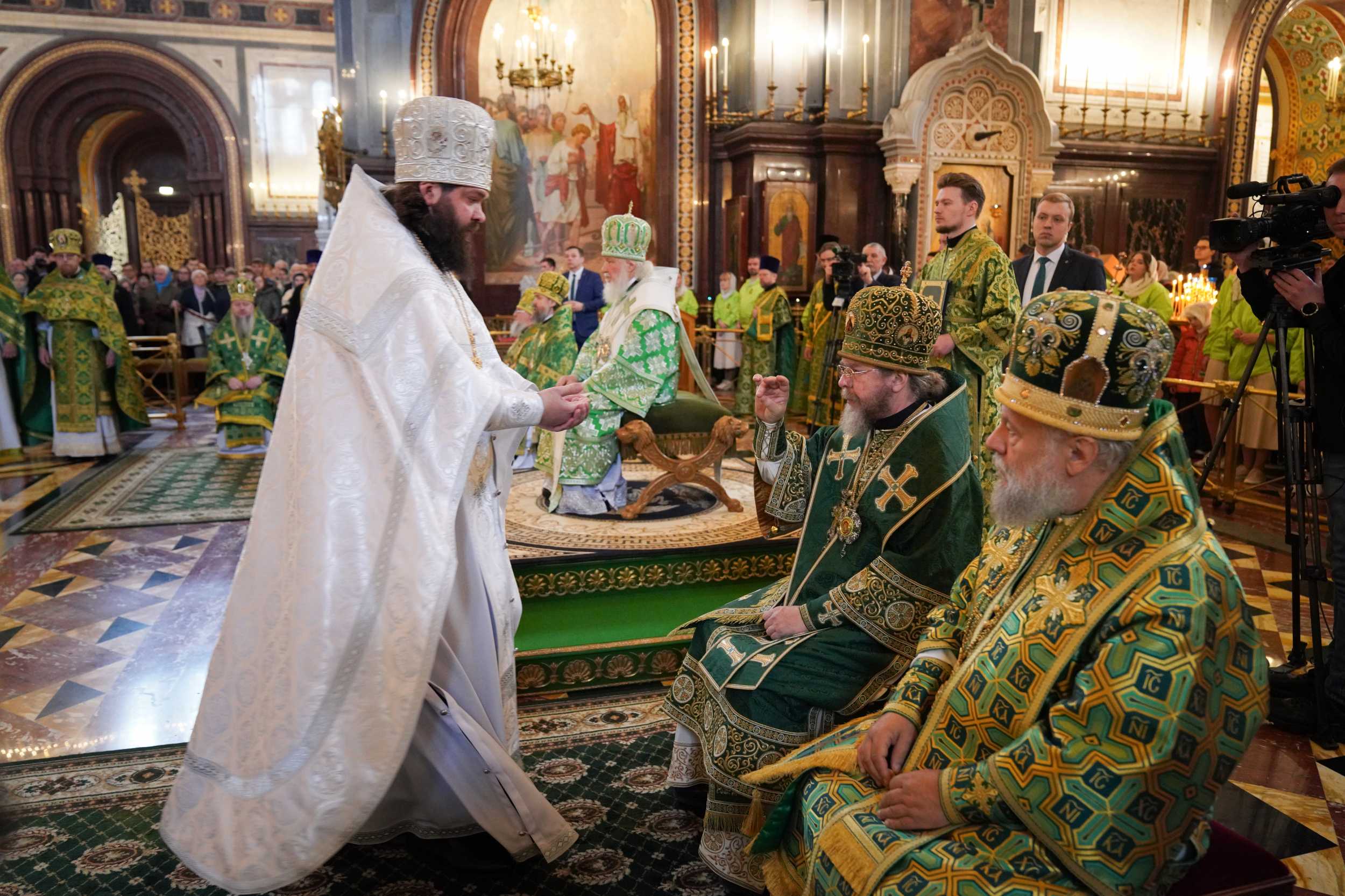 Богослужение в Храме Христа Спасителя посетили: заместитель председателя Государственной Думы Федерального Собрания Российской Федерации А.Ю. Кузнецова; председатель Комитета Совета Федерации ФС РФ по конституционному законодательству и государственному строительству А.А. Клишас; председатель Либерально-демократической партии России, руководитель фракции ЛДПР в Государственной Думе ФС РФ, председатель Комитета Государственной Думы ФС РФ по международным делам Л.Э. Слуцкий; председатель Синодального отдела по взаимоотношениям Церкви с обществом и СМИ В.Р. Легойда; член Совета Федерации ФС РФ от Красноярского края А.В. Усс; первый заместитель руководителя Администрации Президента РФ А.А. Громов; губернатор г. Севастополя М.В. Развозжаев; глава Одинцовского городского округа Московской области А.Р. Иванов; председатель Наблюдательного совета Фонда содействия возрождению традиций милосердия и благотворительности «Елисаветинско-Сергиевское просветительское общество», заместитель председателя Императорского православного палестинского общества А.В. Громова; главный врач Центральной клинической больницы святителя Алексия А.Ю. Заров; руководитель ювелирно-художественной мастерской «Апостол» И.С. Харьков.