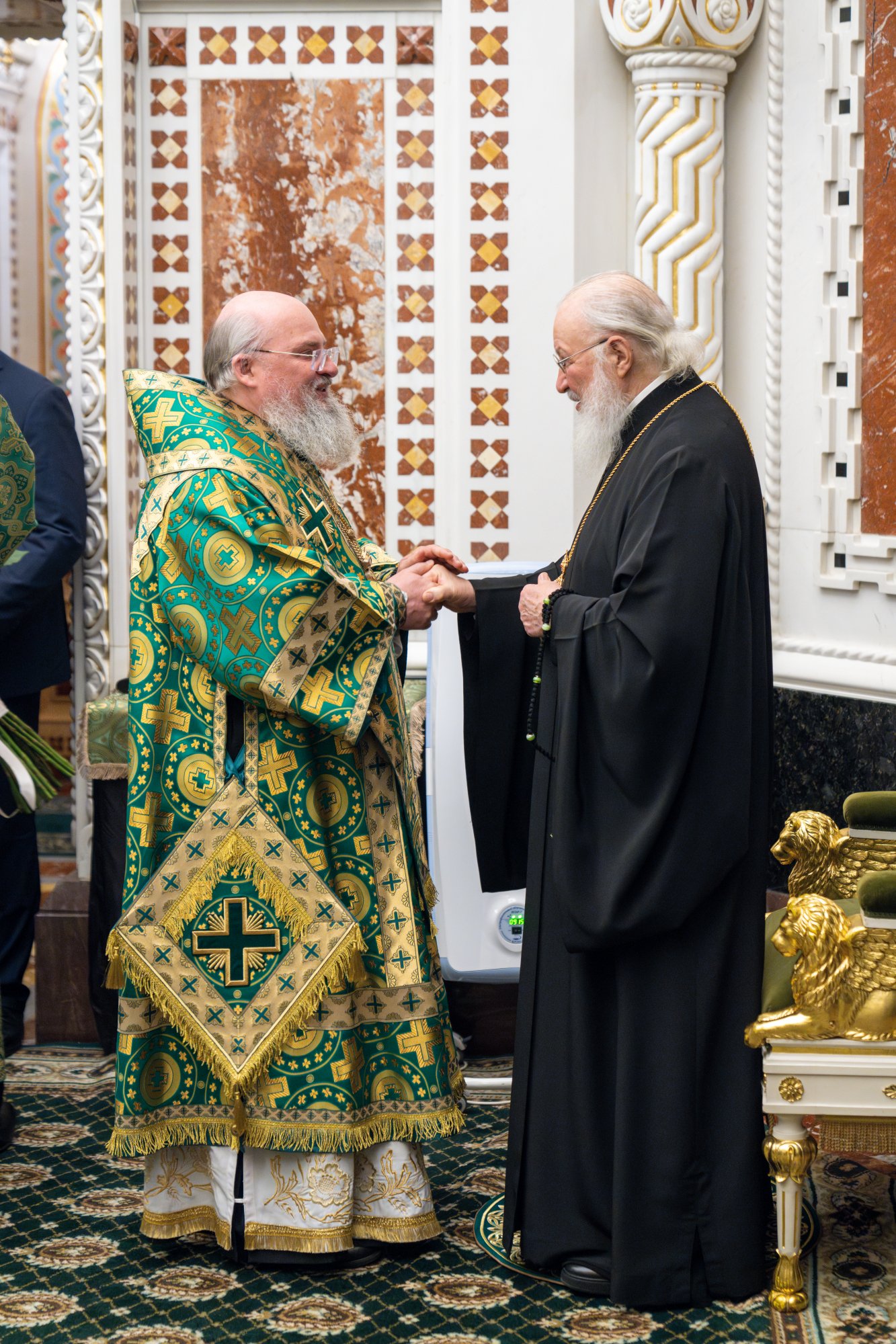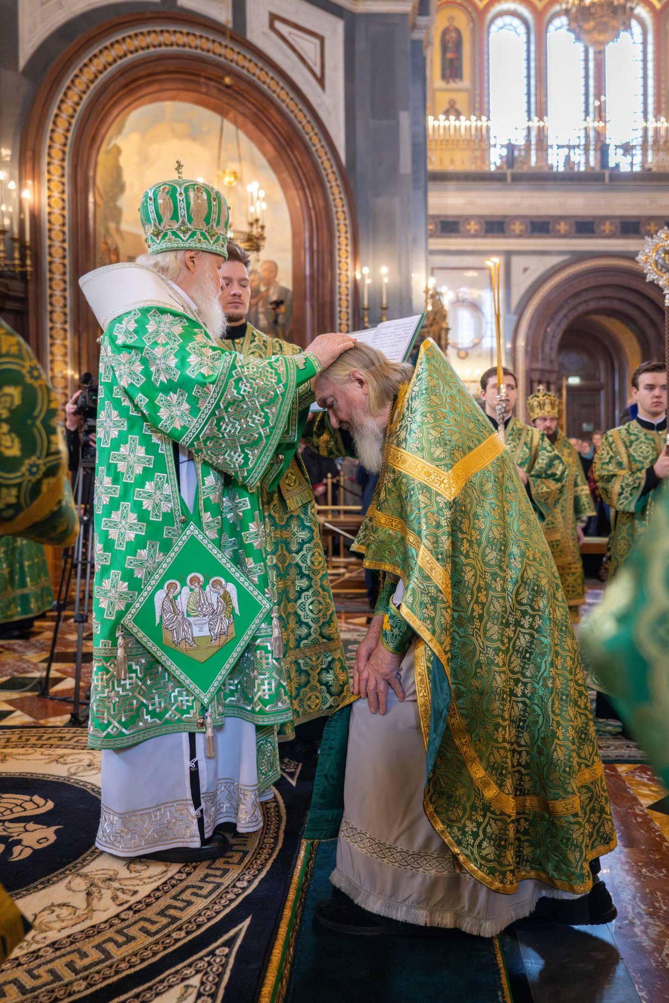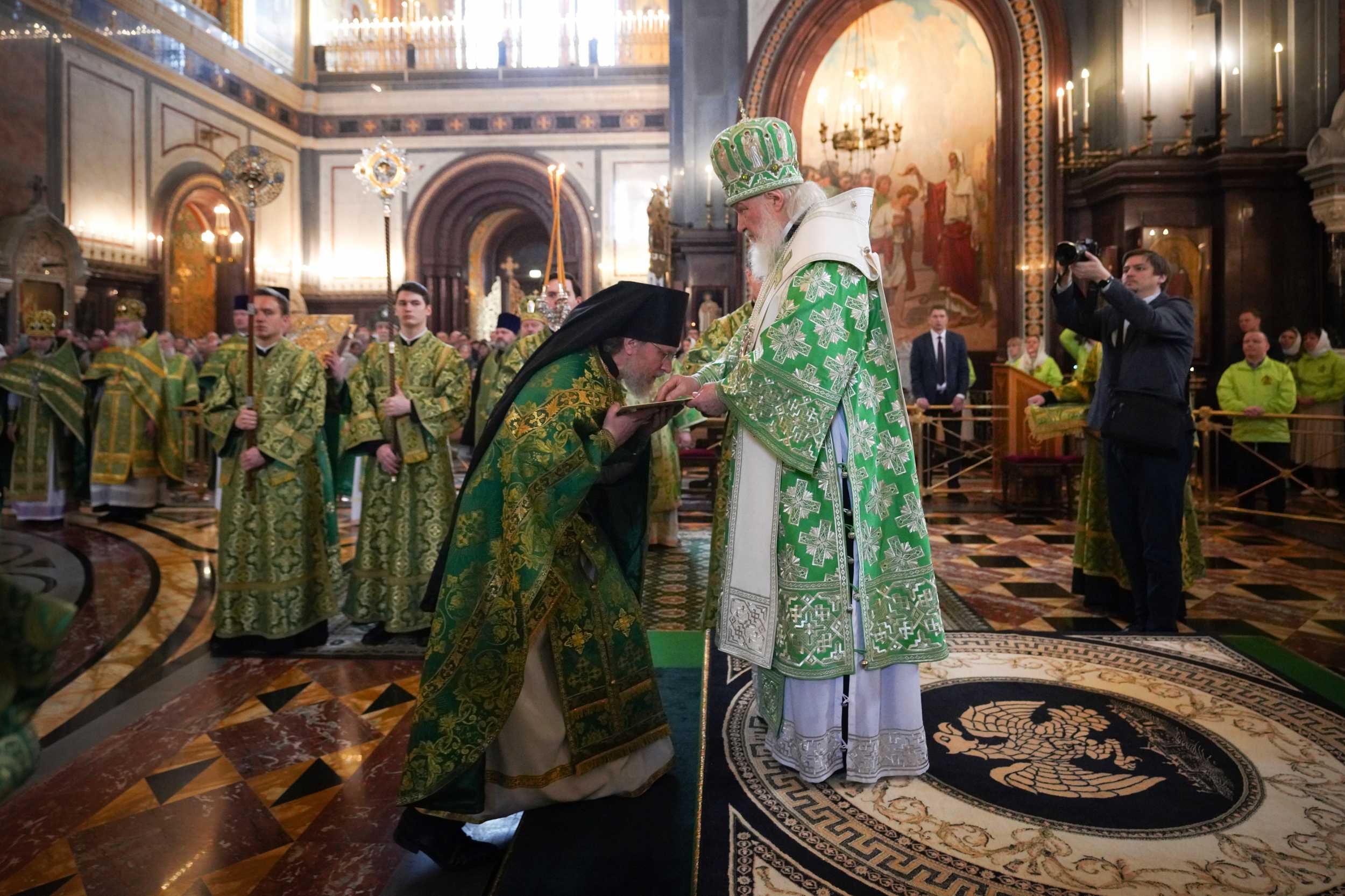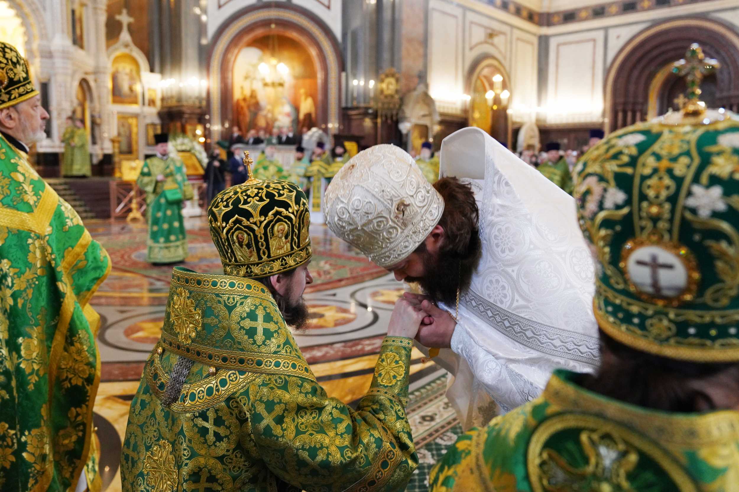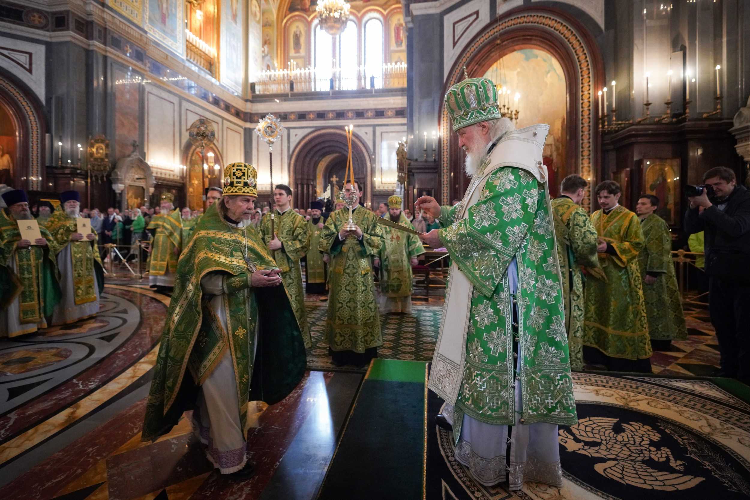 Богослужение в Храме Христа Спасителя посетили: заместитель председателя Государственной Думы Федерального Собрания Российской Федерации А.Ю. Кузнецова; председатель Комитета Совета Федерации ФС РФ по конституционному законодательству и государственному строительству А.А. Клишас; председатель Либерально-демократической партии России, руководитель фракции ЛДПР в Государственной Думе ФС РФ, председатель Комитета Государственной Думы ФС РФ по международным делам Л.Э. Слуцкий; председатель Синодального отдела по взаимоотношениям Церкви с обществом и СМИ В.Р. Легойда; член Совета Федерации ФС РФ от Красноярского края А.В. Усс; первый заместитель руководителя Администрации Президента РФ А.А. Громов; губернатор г. Севастополя М.В. Развозжаев; глава Одинцовского городского округа Московской области А.Р. Иванов; председатель Наблюдательного совета Фонда содействия возрождению традиций милосердия и благотворительности «Елисаветинско-Сергиевское просветительское общество», заместитель председателя Императорского православного палестинского общества А.В. Громова; главный врач Центральной клинической больницы святителя Алексия А.Ю. Заров; руководитель ювелирно-художественной мастерской «Апостол» И.С. Харьков.
