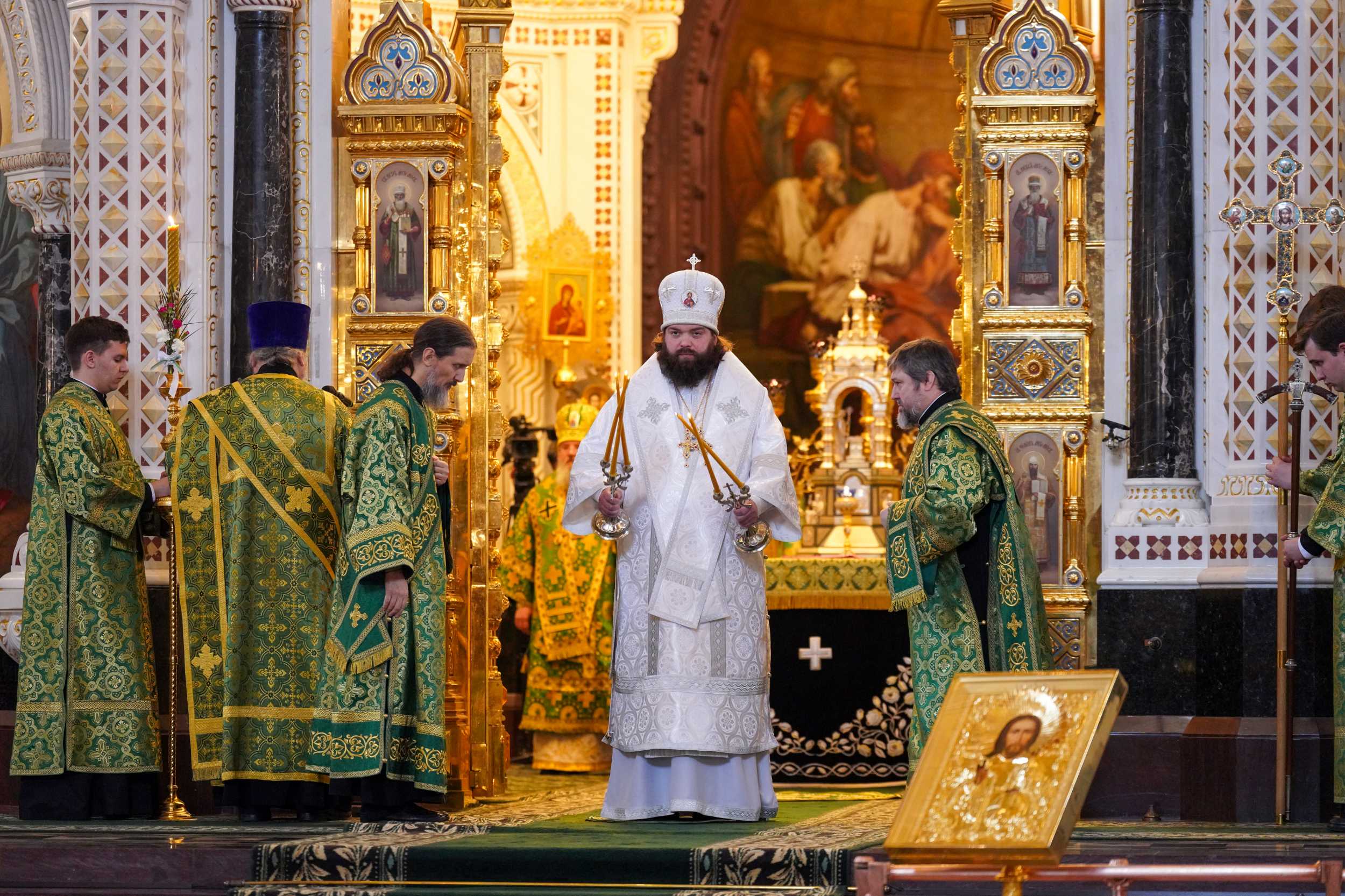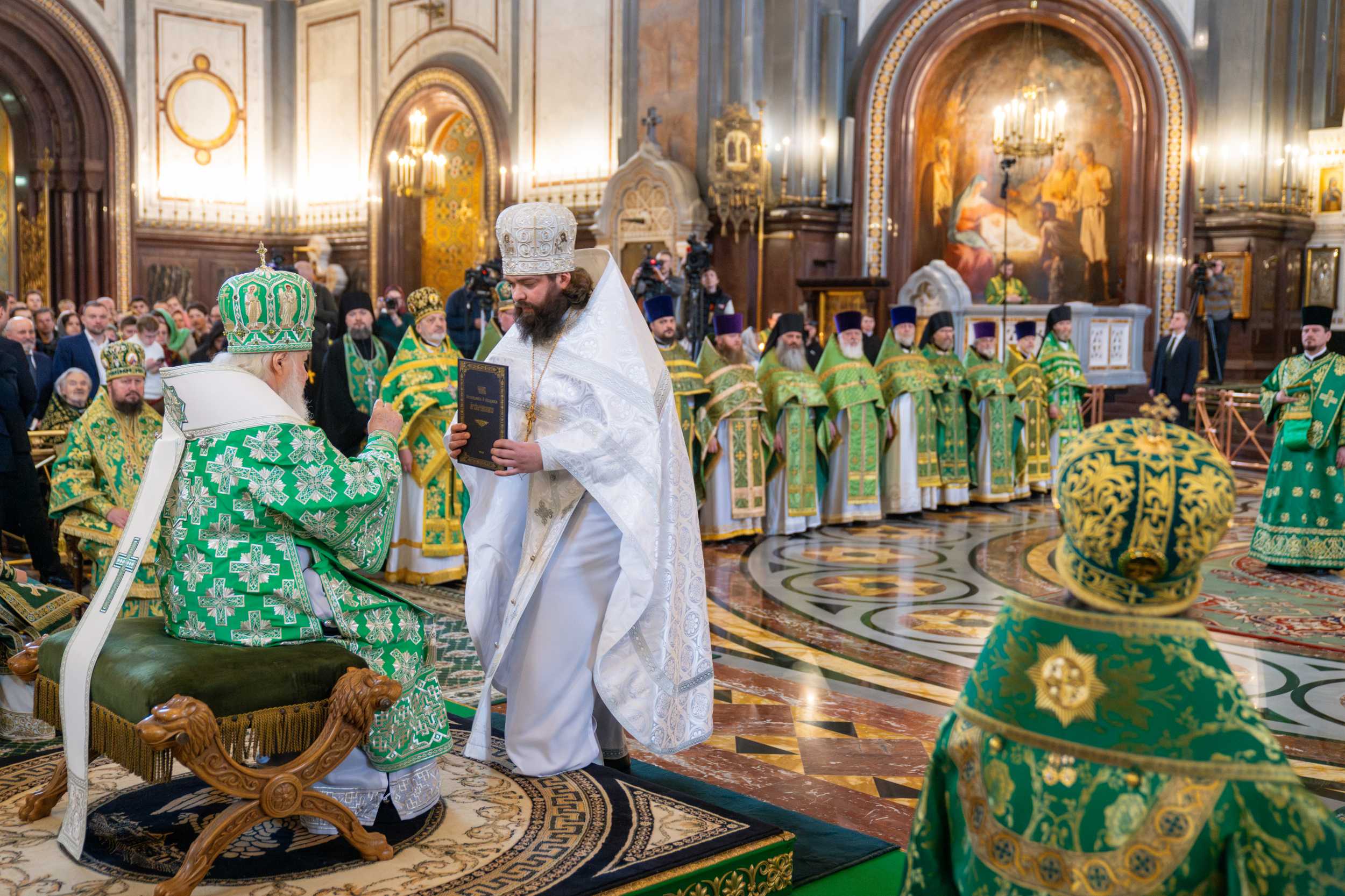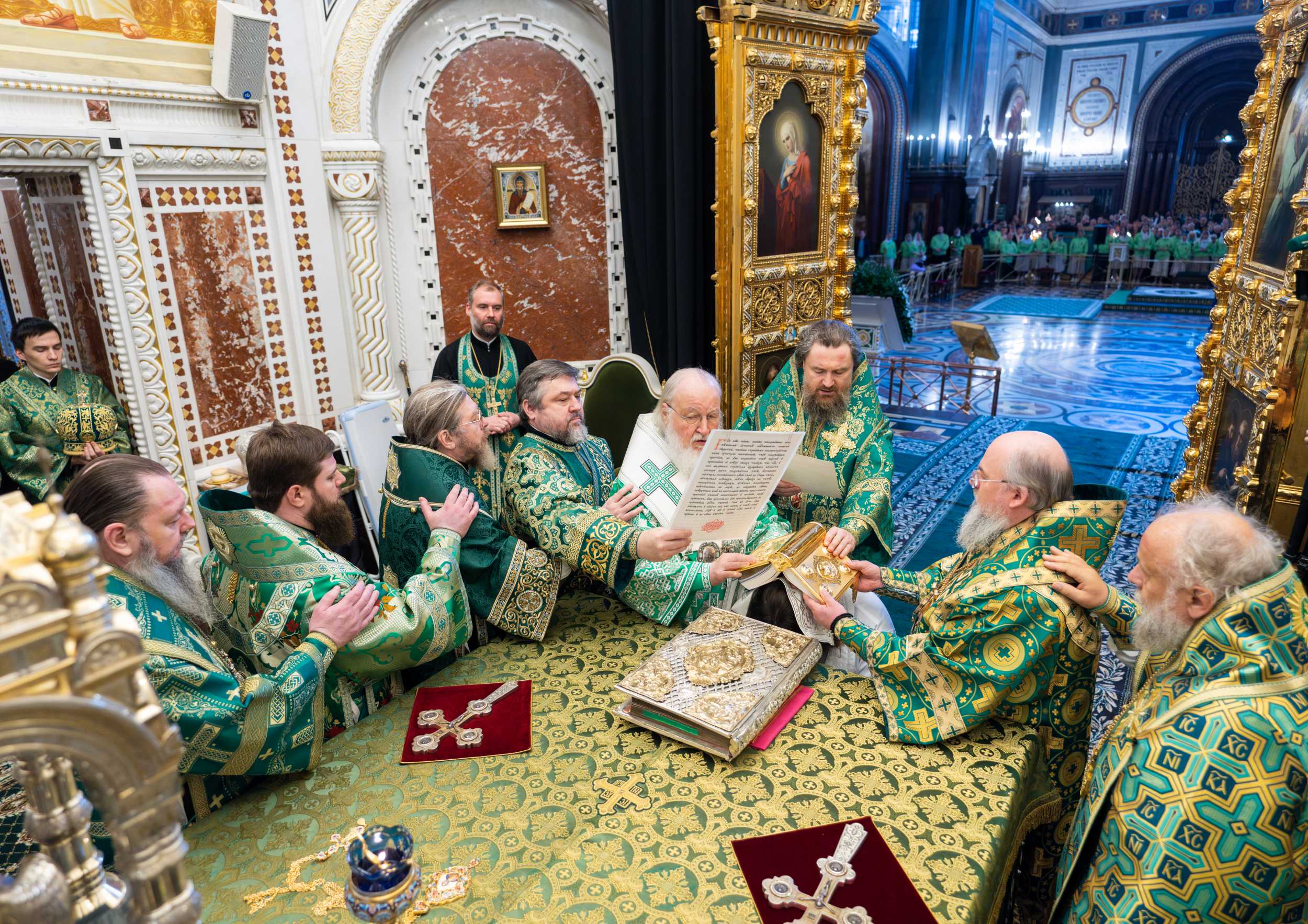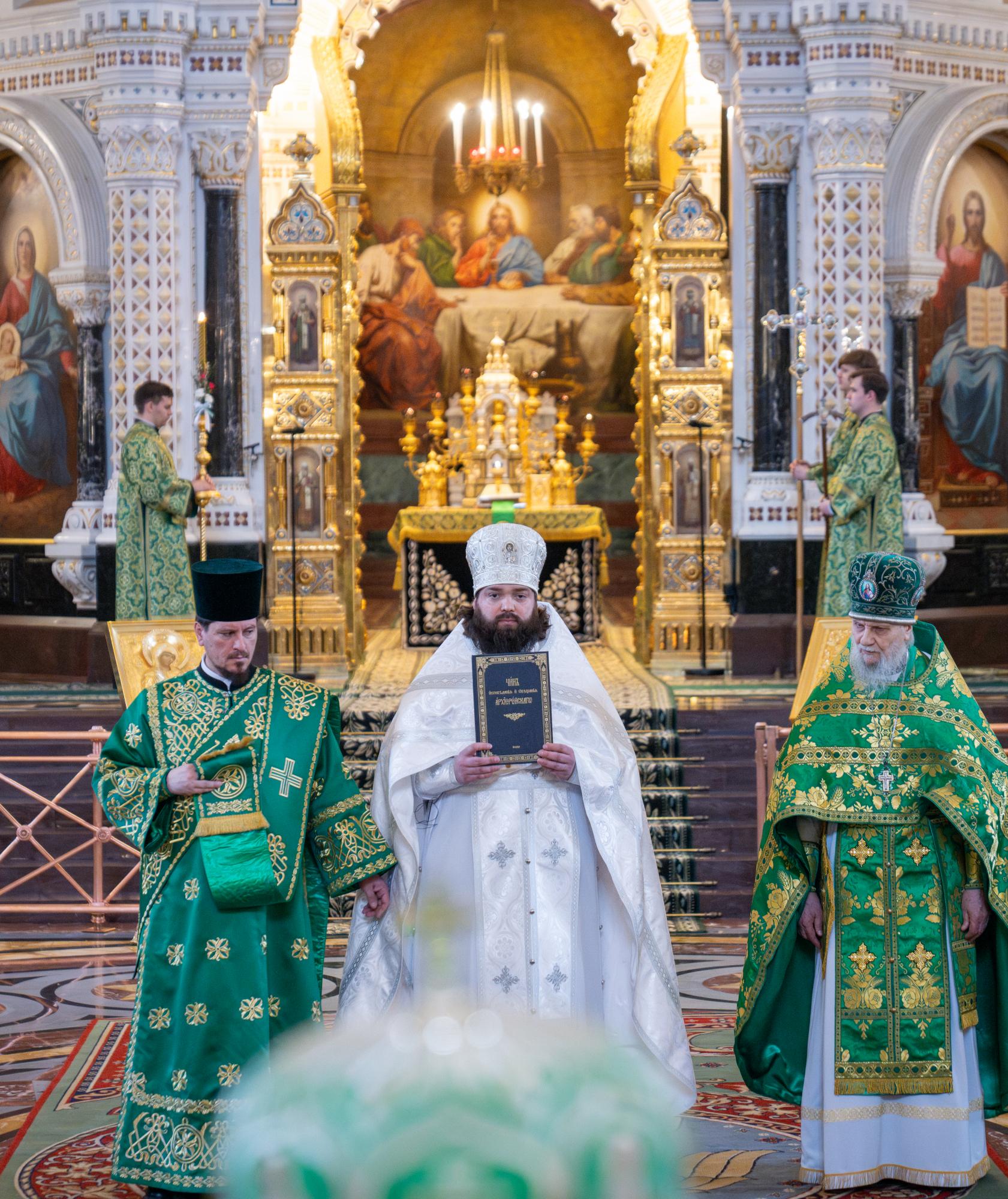 Богослужебные песнопения исполнил Патриарший хор Храма Христа Спасителя (регент — И.Б. Толкачев).