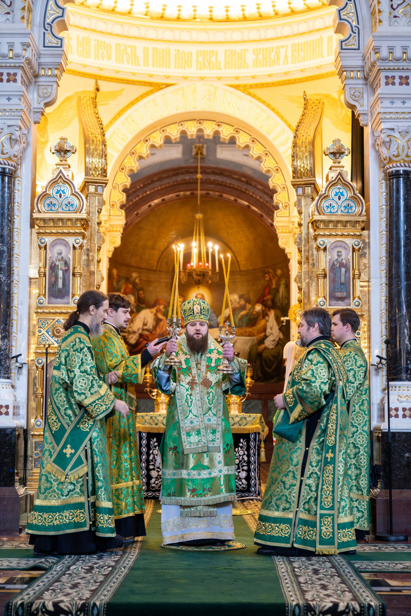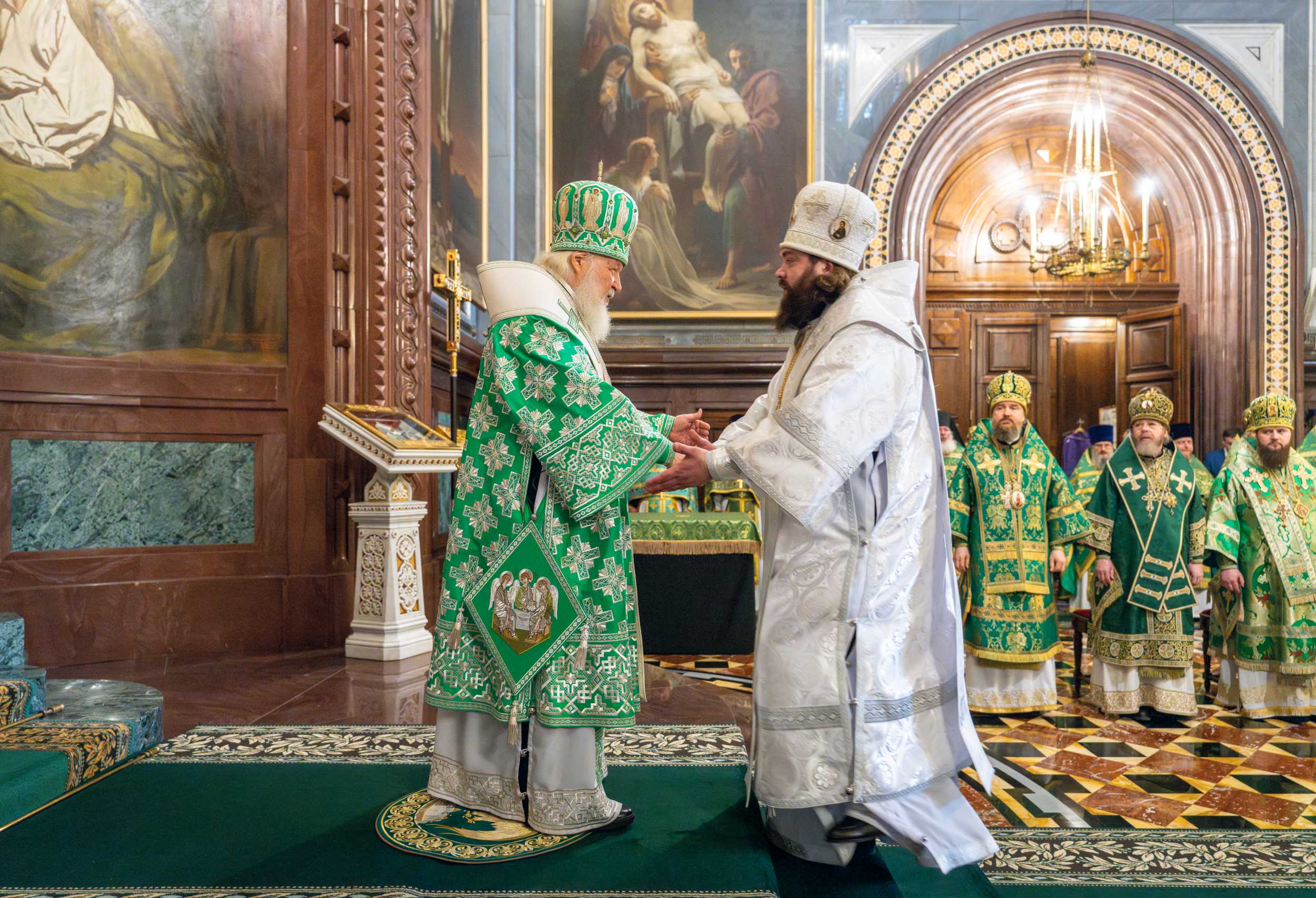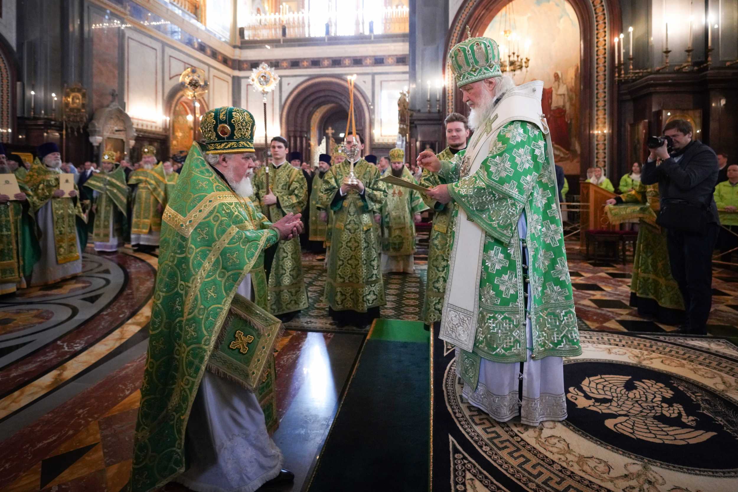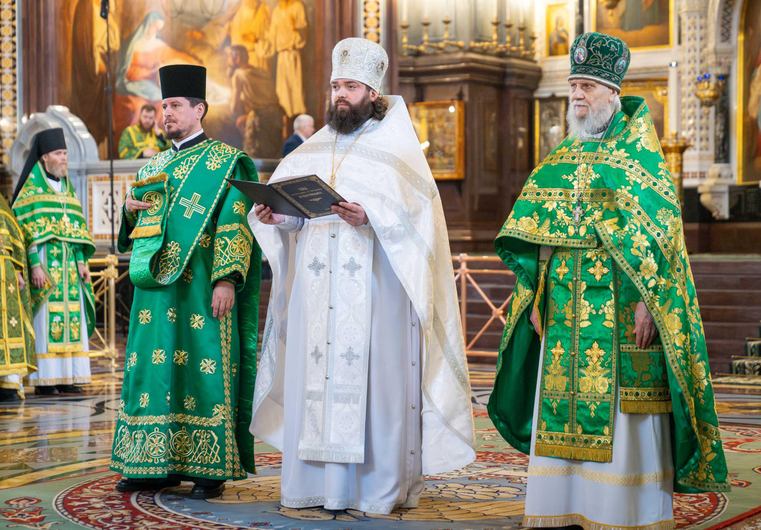 Богослужебные песнопения исполнил Патриарший хор Храма Христа Спасителя (регент — И.Б. Толкачев).