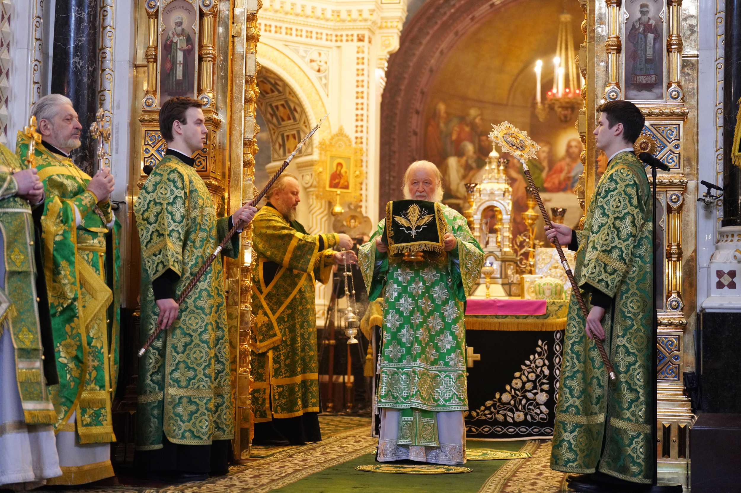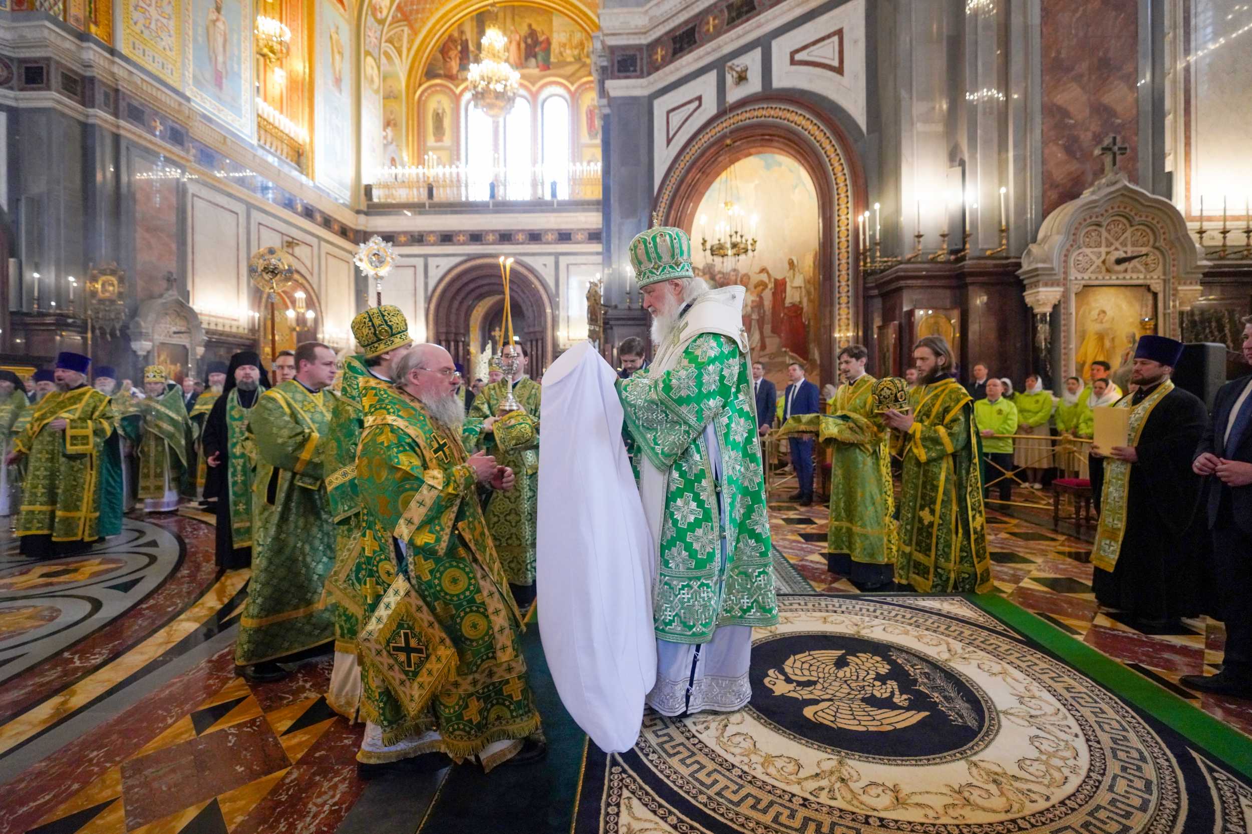 13 апреля 2025 года, в Неделю 6-ю, ваий (цветоносная, Вербное воскресенье), праздник Входа Господня в Иерусалим, Святейший Патриарх Московский и всея Руси Кирилл совершил Божественную литургию святителя Иоанна Златоуста в кафедральном соборном Храме Христа Спасителя в Москве.
